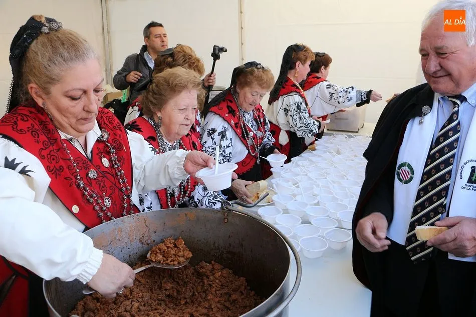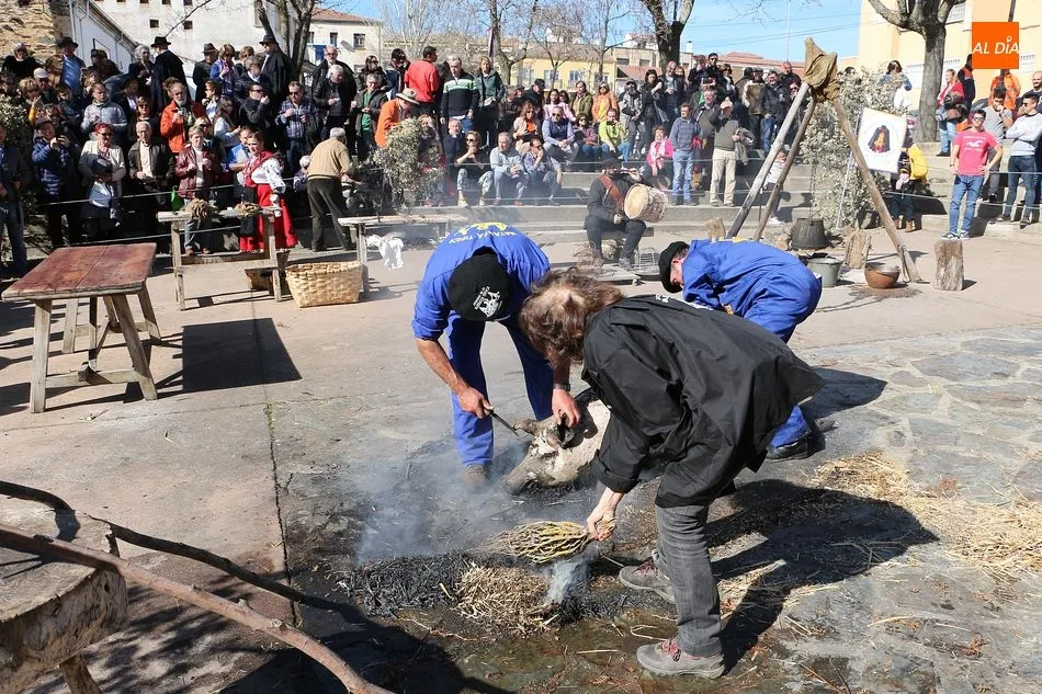 Tal y como exije la ley, el cerdo fue sacrificado fuera de la vista del público, y una vez desangrado, se procedió al despiece a manos de los expertos matarifes. La música de la gaita y el tamboril sonó durante el proceso. Como siempre, las águedas se encargaron de las degustaciones al público, perrunillas, aguardiente y las populares chichas.