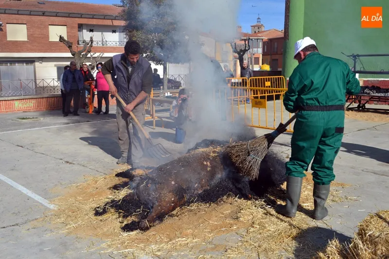 La Plaza de la Leña ha sido el gran escenario sobre el que, pasadas las 10:30 horas de la mañana, comenzaban a organizarse todos los preparativos del cerdo, labores acompañadas por dulces típicos y aguardiente, mientras los sones castellanos fueron anunciando el comienzo de esta festividad organizada por el Ayuntamiento de la Villa.