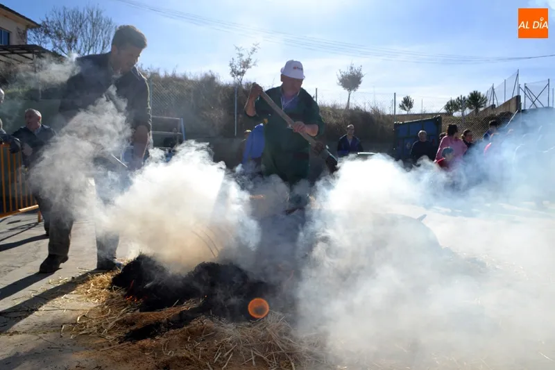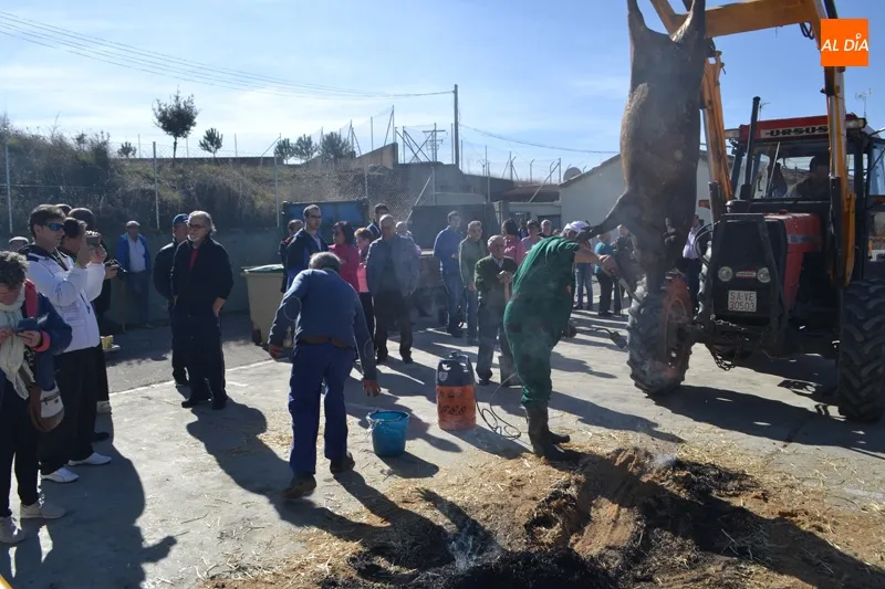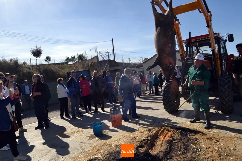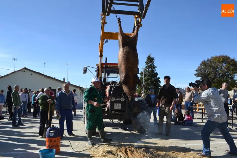 Tradición y temperaturas primaverales se han hermanado este sábado en Macotera para poder escenificar por quinto año consecutivo el rito de la Matanza Tradicional.