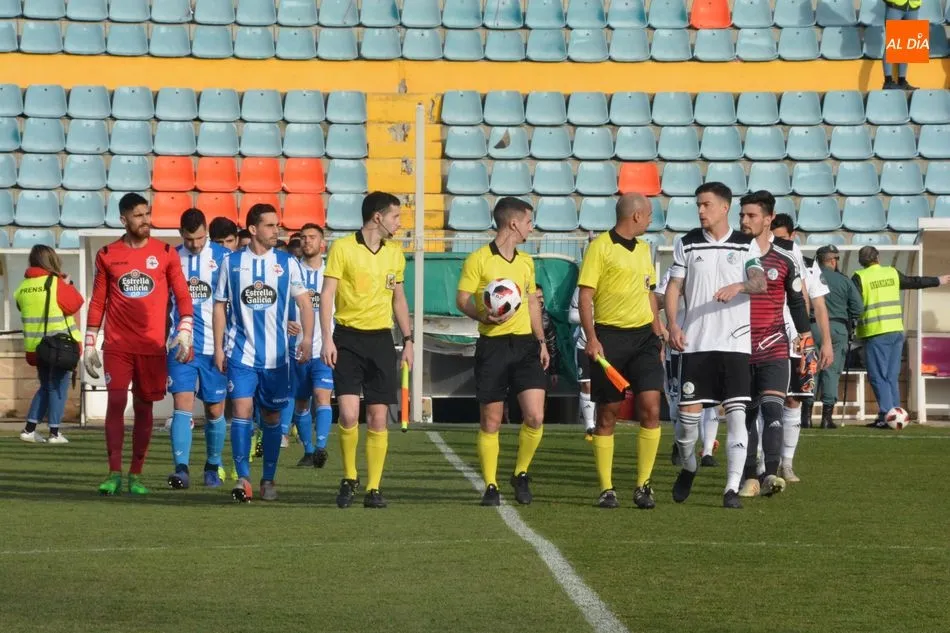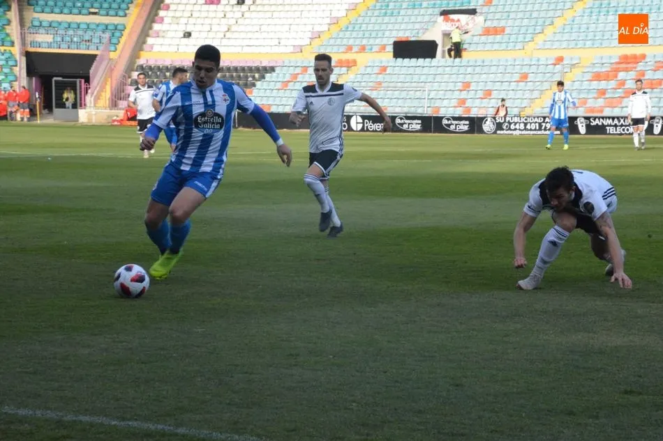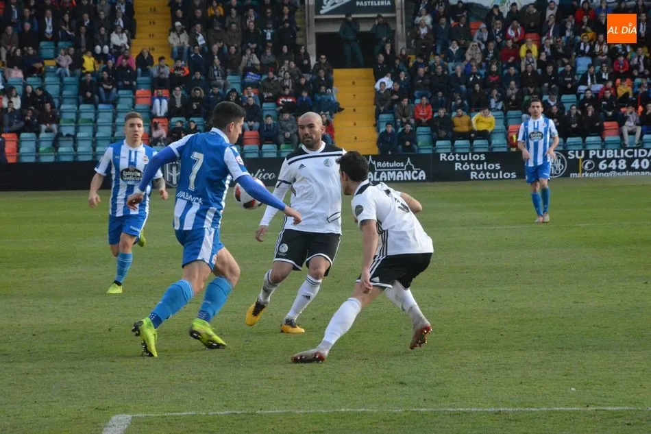 Los diez primeros minutos de juego fueron para el bando salmantino, pero, a partir de ahí, el Deportivo Fabril despertó de su letargo, aunque tampoco pudo generar ocasiones de peligro sobre el arco defendido por Dani Sotres. El bando coruñés realizó su primer tiro a puerta en el 22? con un remate de cabeza de Quique Fornós a la salida de un corner.