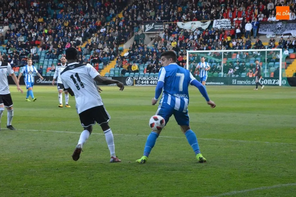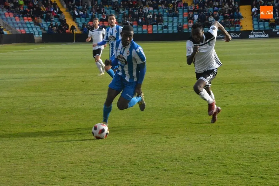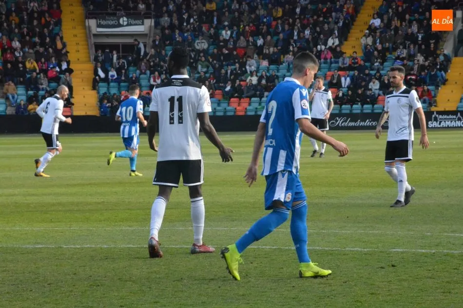 El partido arrancó con una acción muy significativa del plan de juego del Salamanca UDS: balones en largo para las sucesivas carreras de Owusu al contragolpe. La teoría estuvo bien planteada, pero la práctica no salió a pedir de boca. Manu Molina, el encargado de actuar como enlace con la delantera, no tuvo su día en el pase, mientras que el extremo africano tampoco tuvo una actuación para enmarcar.