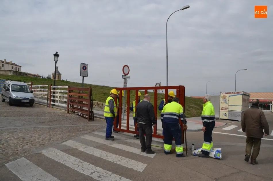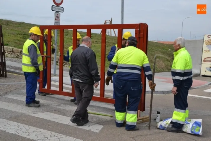 Dentro de esta reforma de la curva (que afecta únicamente al lateral derecho en dirección hacia el Registro) hay una novedad: la instalación de una nueva puerta de barras verticales, que estaban colocando por primera vez en la mañana del lunes los operarios municipales que se están encargando de las tareas de montaje de la infraestructura carnavalera.
