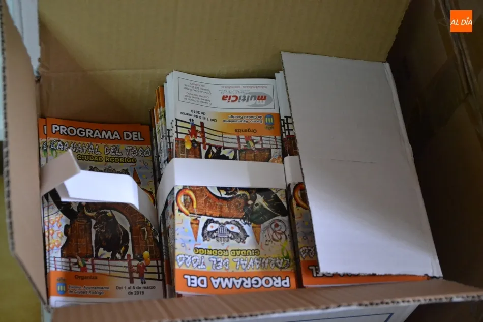 El Ayuntamiento de Ciudad Rodrigo inició en la mañana del lunes el reparto de ejemplares del demandadísimo programa de mano del Carnaval del Toro 2019, que contiene todo el calendario de actividades comprendido entre el inicio de las tientas del Bolsín el pasado 2 de febrero en Villalpando (Zamora) y el Domingo de Piñata que se celebrará el 10 de marzo en el Paseo Fernando Arrabal.