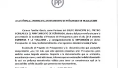 nuestra disconformidad con la falta de rigor a la hora de presentar este Presupuesto, así como la poca validez de los documentos que completan estos presupuestos, al contener errores graves que invalidan todo este Proyecto de Presupuestos? y añaden que dicha documentación ?denota una falta de responsabilidad del equipo de gobierno socialista, algo que no podemos consentir, ya que va en contra de los intereses de Peñaranda