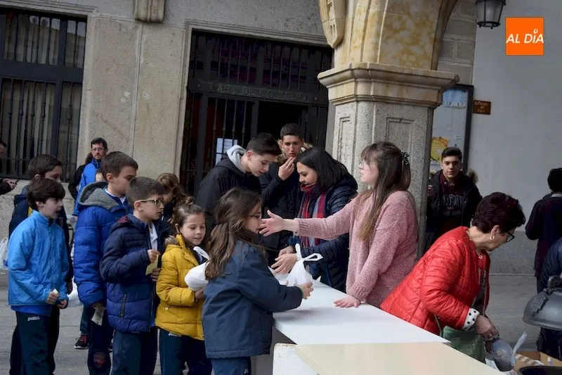 Previamente al reparto de los bocadillos, tuvo lugar la lectura de un manifiesto en la Plaza Mayor