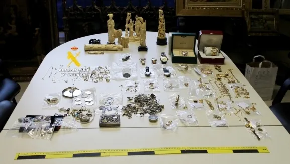 De forma simultanea, se llevó a cabo un registro en el establecimiento de compra-venta donde vendían las joyas y efectos sustraídos, recuperando gran cantidad de joyas y efectos, entre los que se encuentran obras de arte, de posible procedencia ilícita, por carecer de los registros correspondientes.