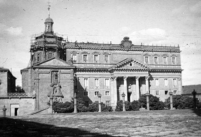 A finales del siglo XIX esta pequeña iglesia se encontraba en estado cercano a la ruina. La fotografía da testimonio de las reparaciones que en el último momento la salvaron de desaparecer, destinándola a ser utilizada como parroquia de la Catedral. La falta del actual campanario metálico, construido por Moneo en 1903 y la presencia de andamios alrededor de la cúpula permiten datar la imagen por el verano de 1897.