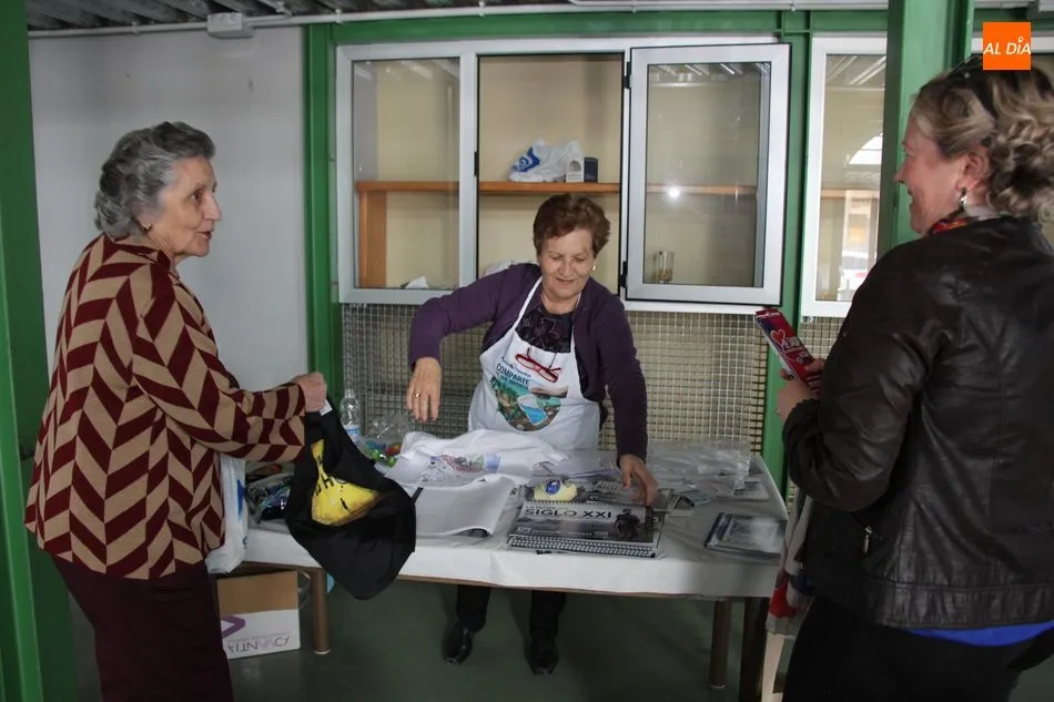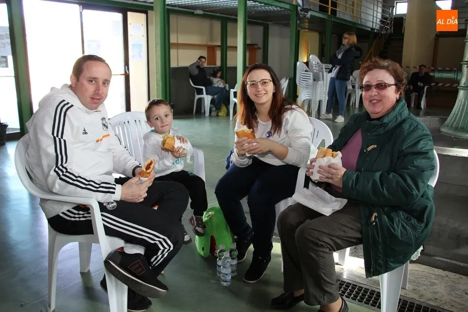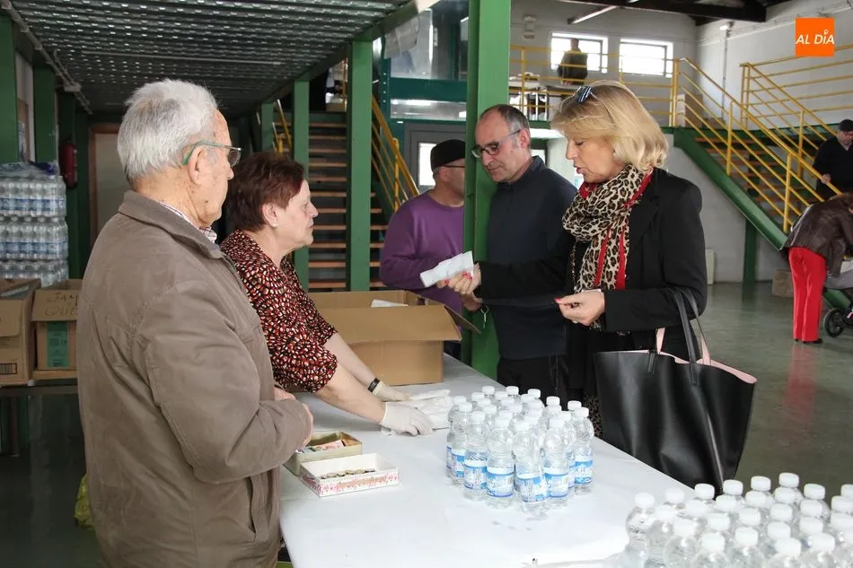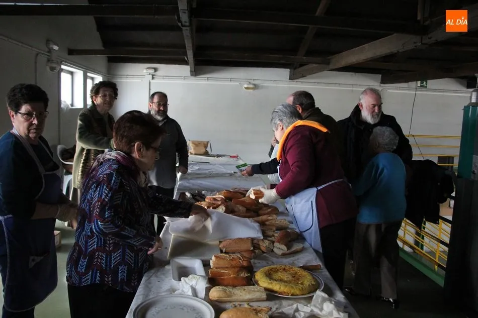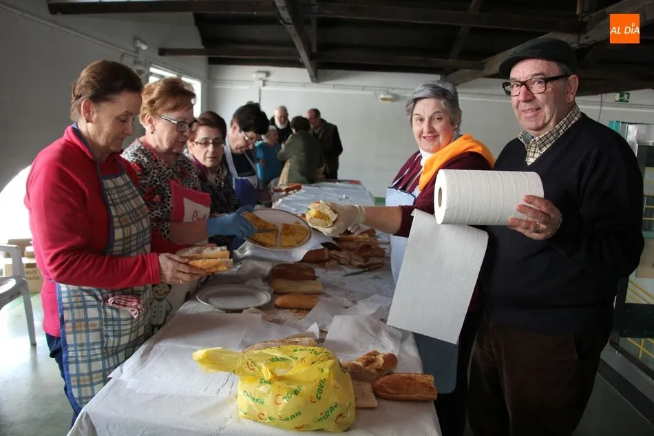 Hasta 110 tortillas, alguna de ellas con formato especial ?bocata?, embutidos, queso y barras de pan conformaban el ?material? para realizar 768 bocadillos por parte de un nutrido grupo de voluntarios, que vendían el fruto de su trabajo y de la colaboración de comercios, empresas y bares a razón de 3 euros, botella de agua incluida.