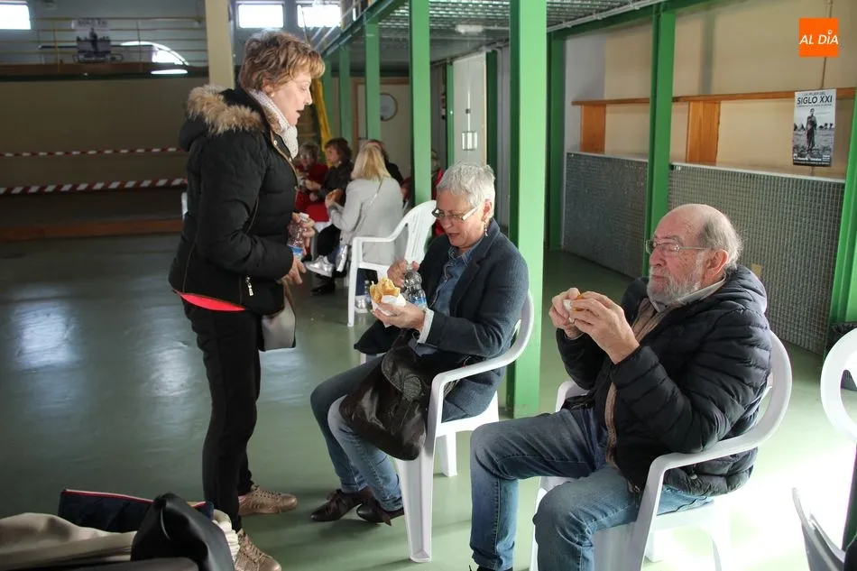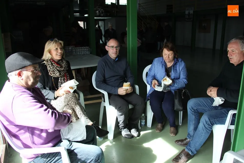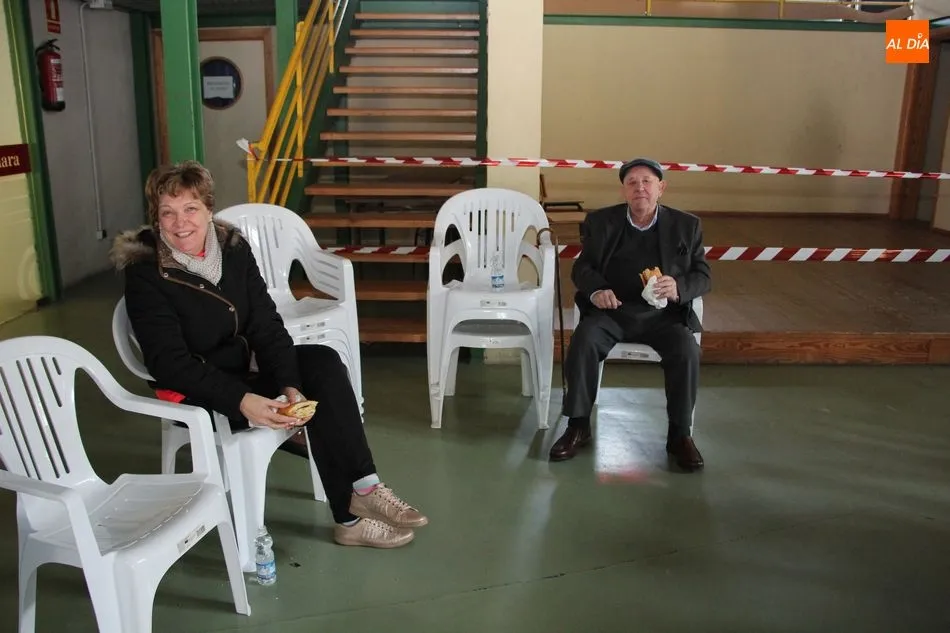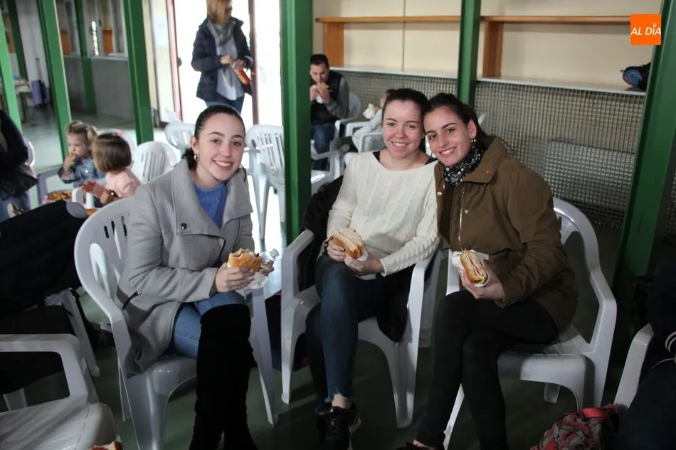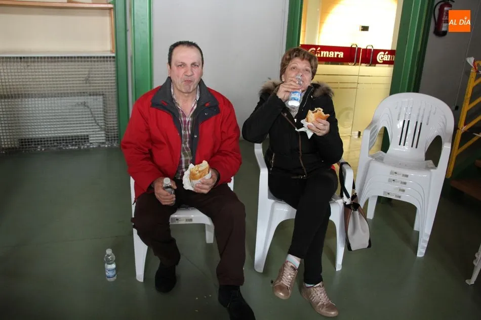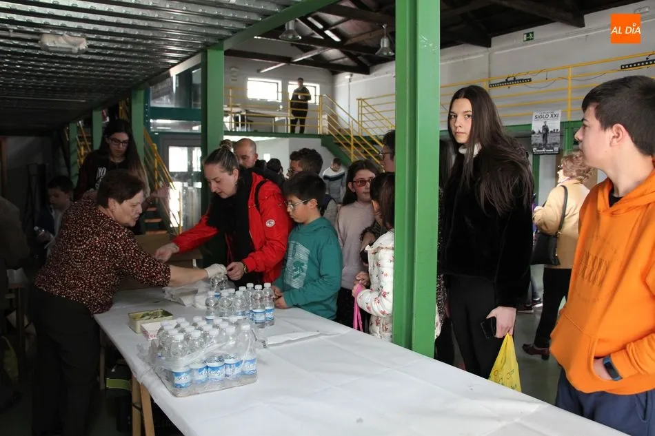 Hasta 110 tortillas, alguna de ellas con formato especial ?bocata?, embutidos, queso y barras de pan conformaban el ?material? para realizar 768 bocadillos por parte de un nutrido grupo de voluntarios, que vendían el fruto de su trabajo y de la colaboración de comercios, empresas y bares a razón de 3 euros, botella de agua incluida.