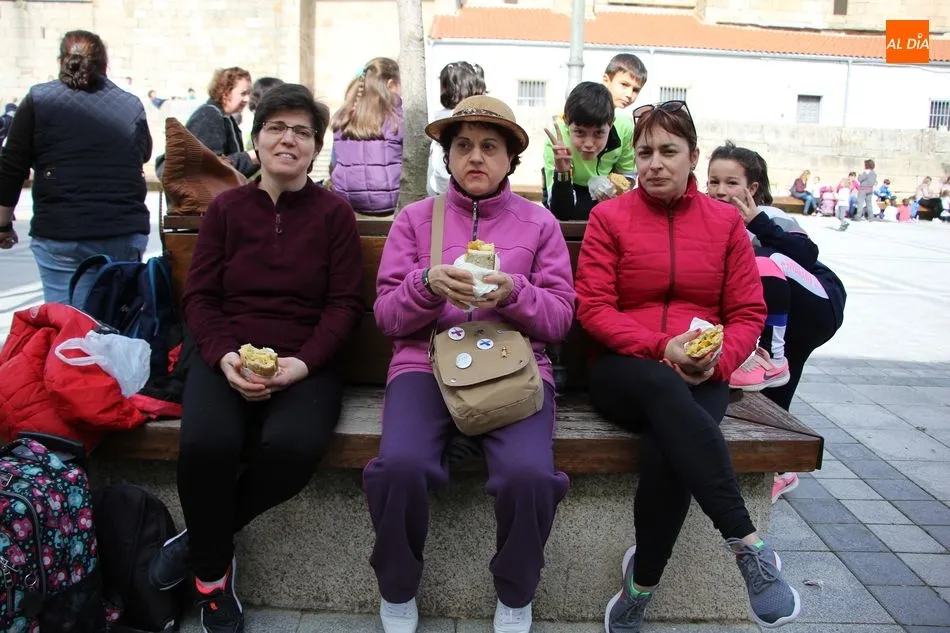 A la convocatoria no faltaron los chicos de Asprodes o alumnos del IES Ramos del Manzano y del CEIP Manuel Moreno Blanco. Además, el buen tiempo invitaba a comer el bocadillo al sol, así que la Plaza de España se convirtió en el lugar principal de reunión.