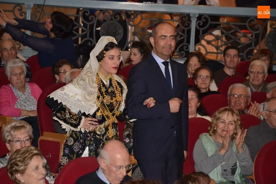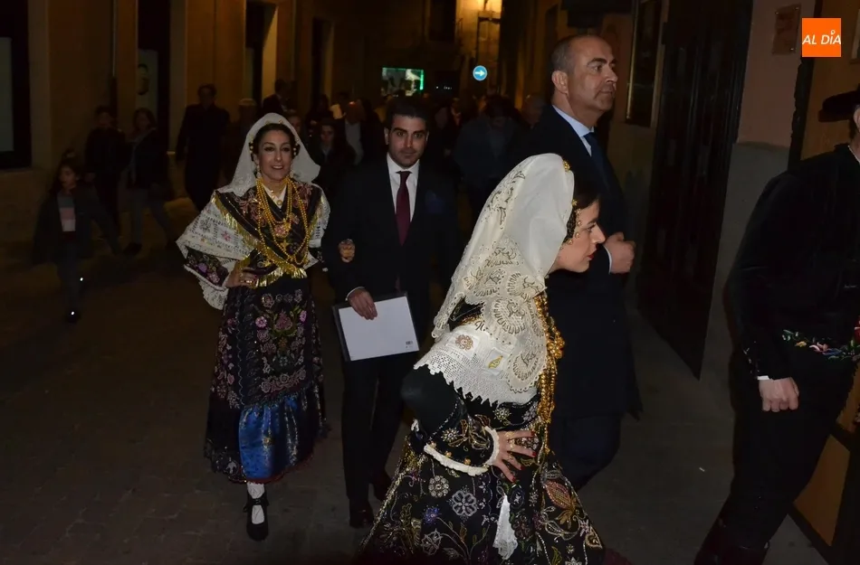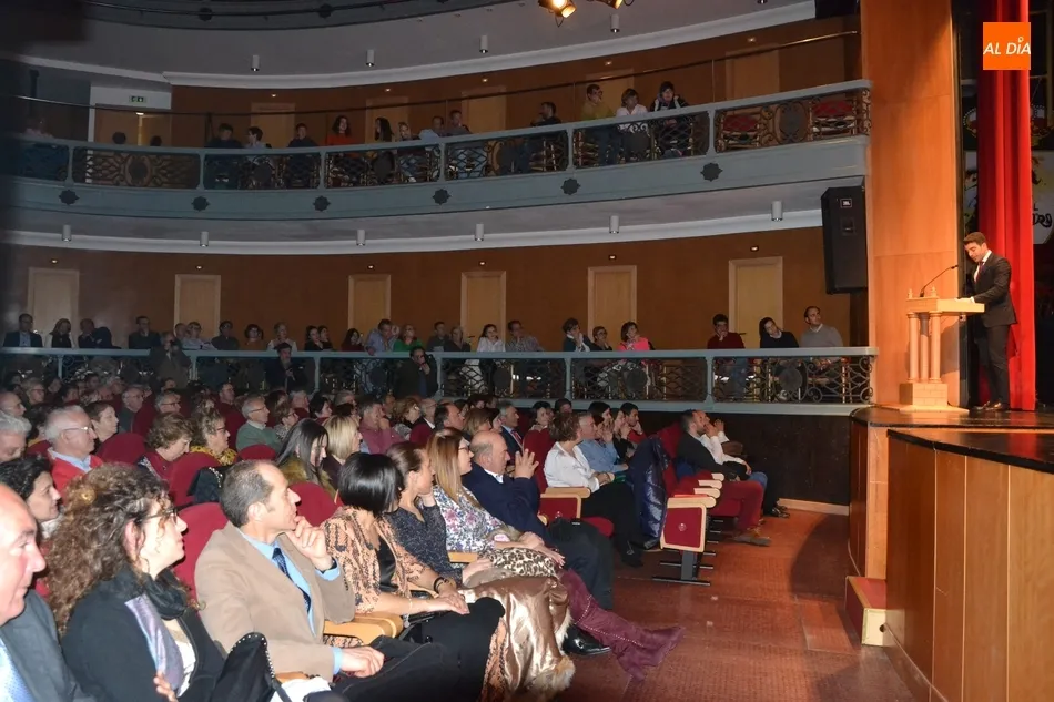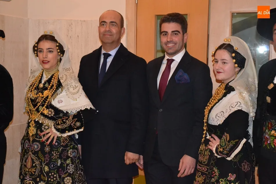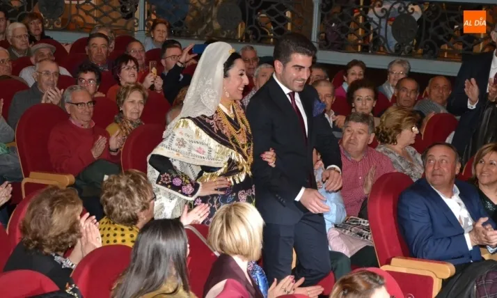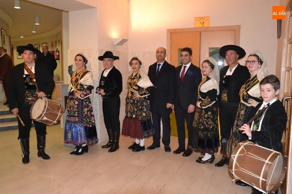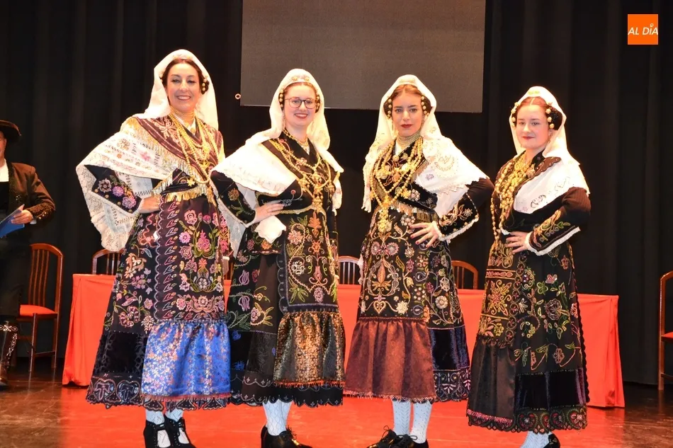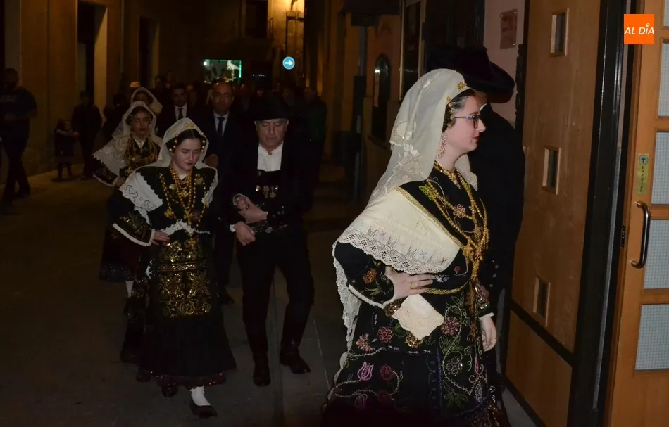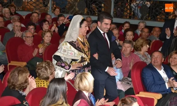 Alberto Galán desvela anécdotas personales a la par que anima a defender el encierro a caballo   | Imagen 1La velada de la Asociación Charra del Caballo había arrancado en el Restaurante Tamborino II, donde se puso en marcha el cortejo en dirección al Teatro Nuevo. De esta comitiva participaron, además del pregonero y de miembros de la Asociación, varias mujeres ataviadas con el traje charro (de la Asociación El Botón Charro de Miróbriga) y dos tamborileros.