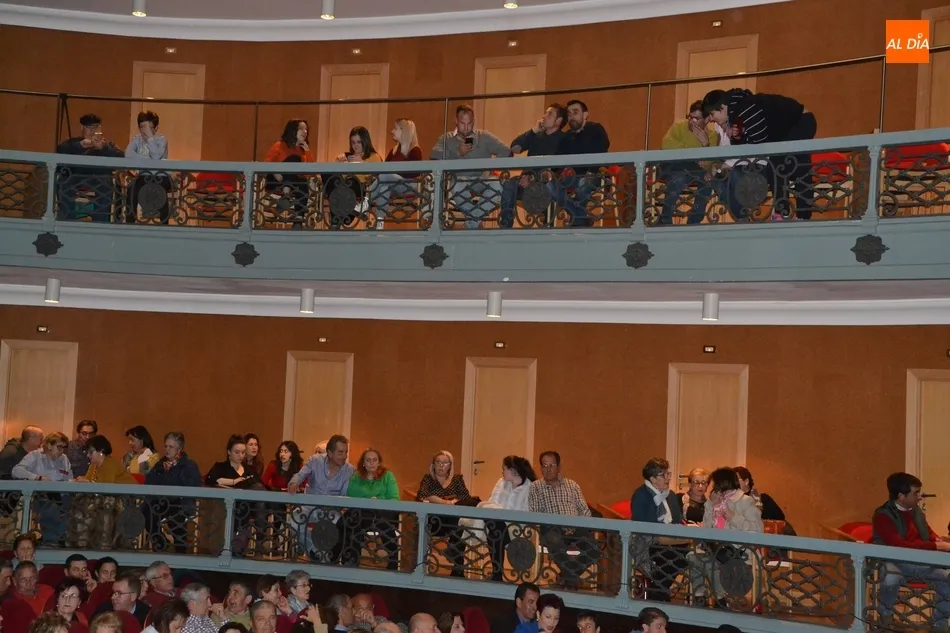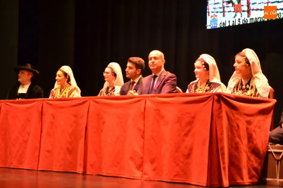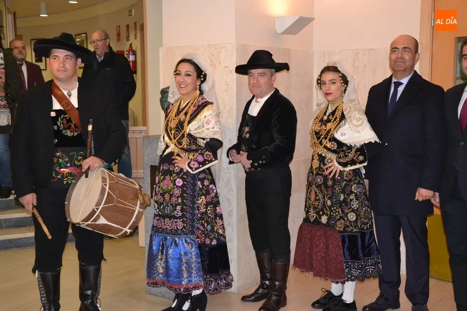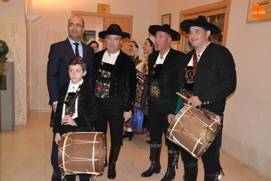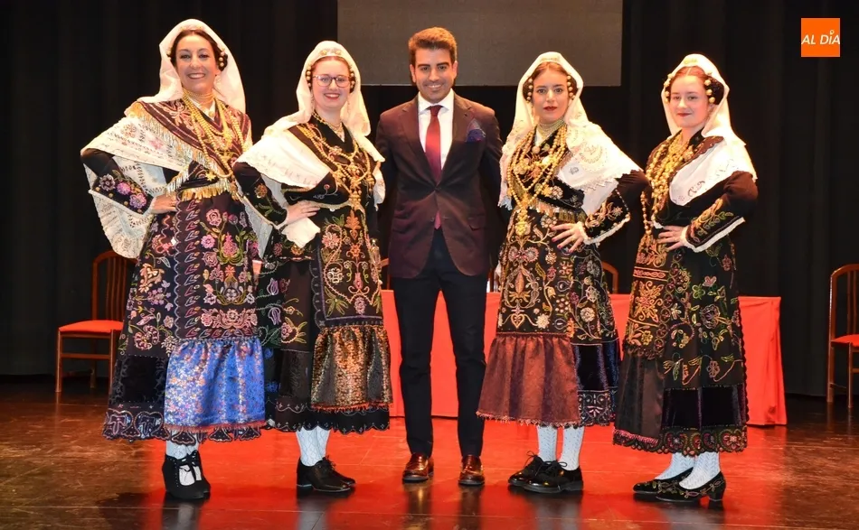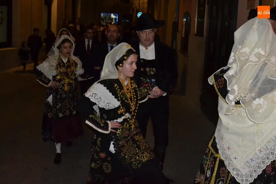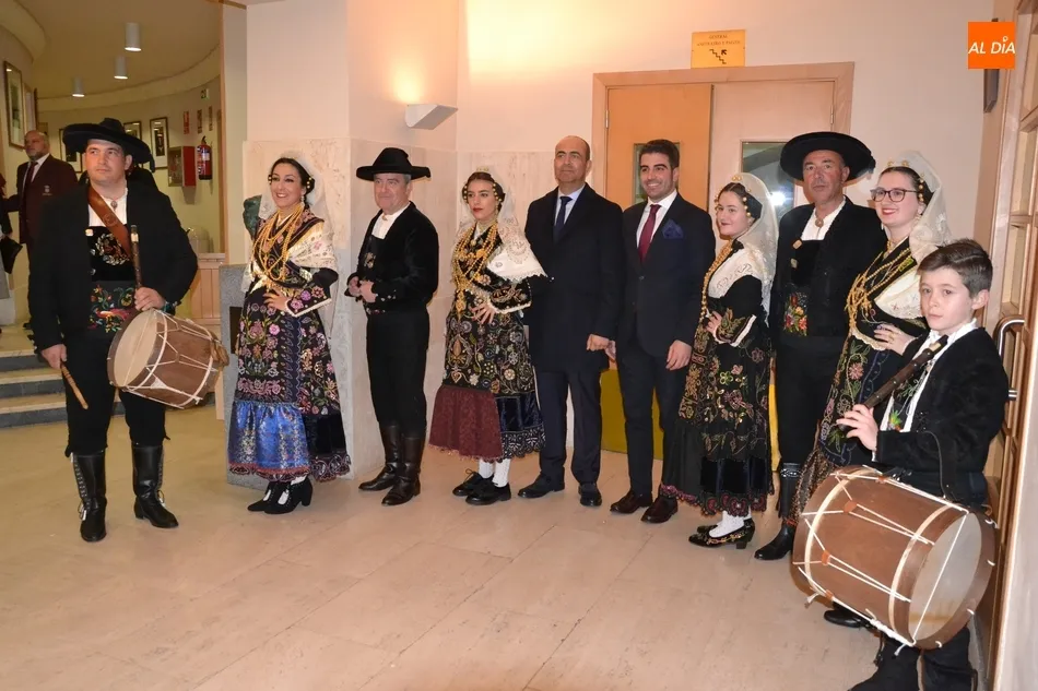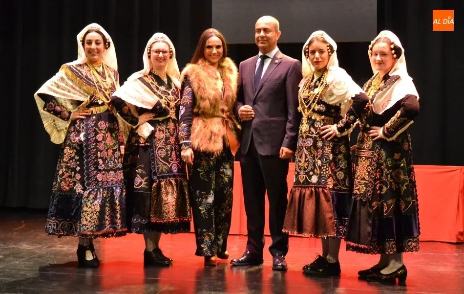 Alberto Galán desvela anécdotas personales a la par que anima a defender el encierro a caballo   | Imagen 1La velada de la Asociación Charra del Caballo había arrancado en el Restaurante Tamborino II, donde se puso en marcha el cortejo en dirección al Teatro Nuevo. De esta comitiva participaron, además del pregonero y de miembros de la Asociación, varias mujeres ataviadas con el traje charro (de la Asociación El Botón Charro de Miróbriga) y dos tamborileros.