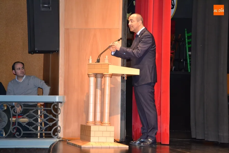 A continuación, llegó la hora de que el presidente de la Asociación, Ángel López Manzano, presentase al pregonero, recordando cuando le entrenó en la antigua Agrupación Deportiva Miróbriga. Al hilo de esto, expresó que ?vino como niño a jugar al fútbol y regresa convertido en pregonero?.