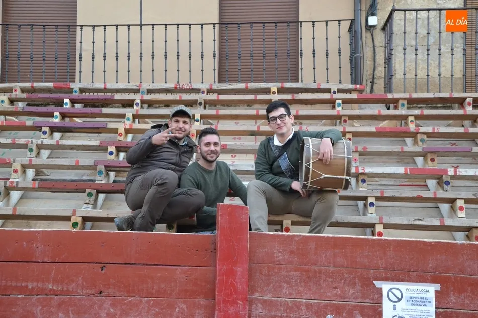 Las ganas que tienen la mayoría de los mirobrigenses de que llegue el Carnaval 2019 son tan grandes que algunos de ellos no se resisten a subirse a los tablaos de la Plaza Mayor nada más finalizar su montaje. Fue el caso en la tarde del sábado de los tres jóvenes que aparecen en la imagen, que estaban subidos a un tablao cuya construcción había concluido poco antes.