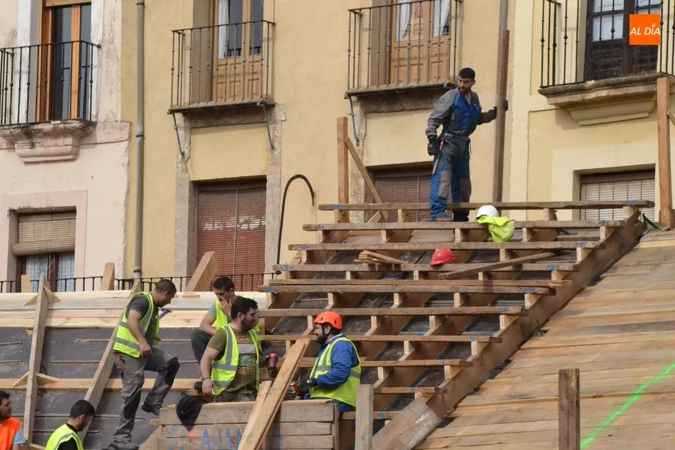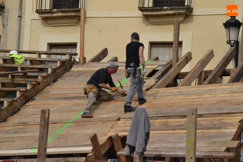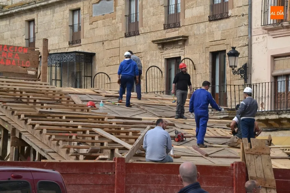 Como ya hemos publicado, la actual reglamentación dice que los trabajos de construcción de los tablaos deben culminar como muy tarde en la tarde del domingo de preCarnaval, para que así la Plaza Mayor de Ciudad Rodrigo tenga un ritmo comercial ?normal? (aunque sea con los tablaos puestos) durante los próximos días.