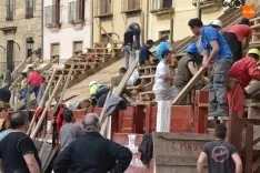 En este sentido, varias de las familias y agrupaciones que se encargan de construir los tablaos llevan hasta la propia Plaza algunas viandas para irlas tomando a modo de aperitivo en el propio lugar, para así no tener que abandonar la operación, que este año se está realizando con sol y una muy buena temperatura.