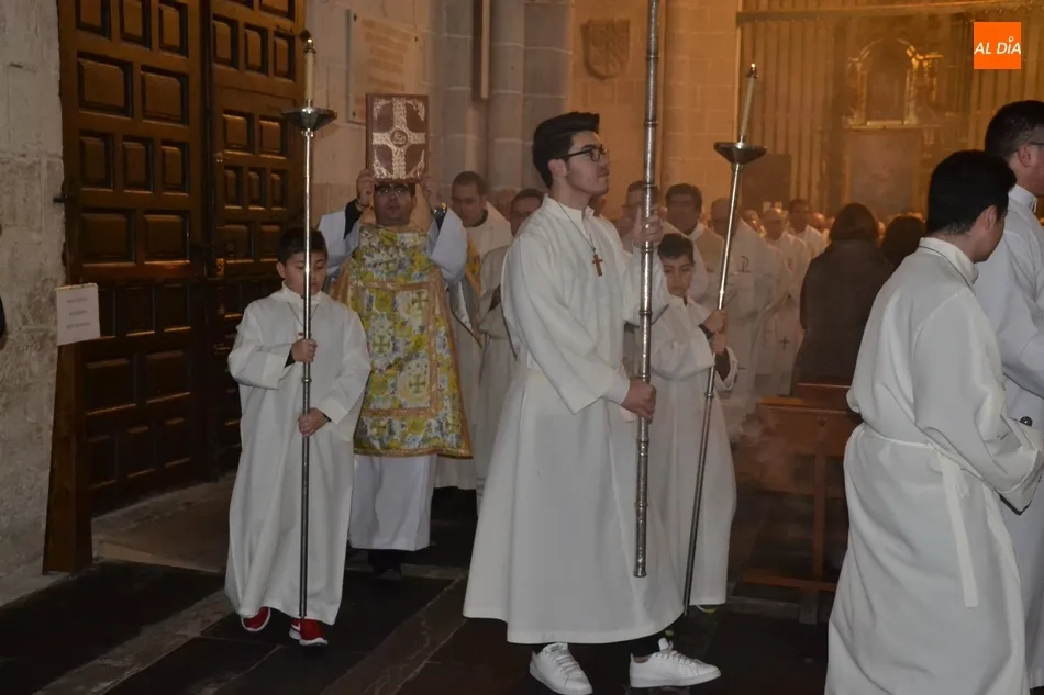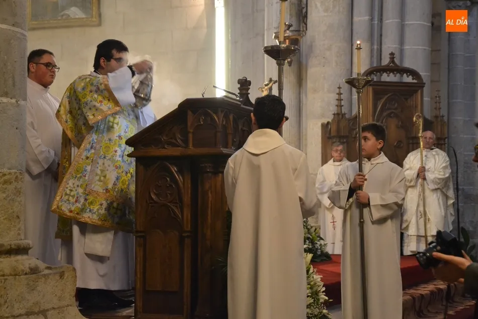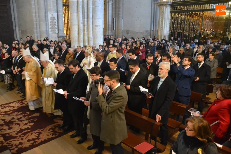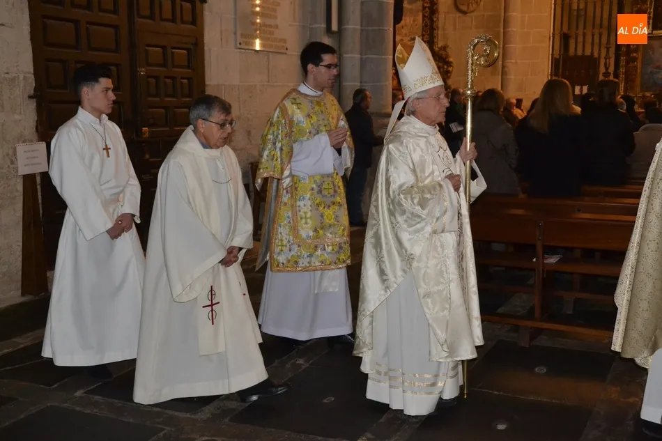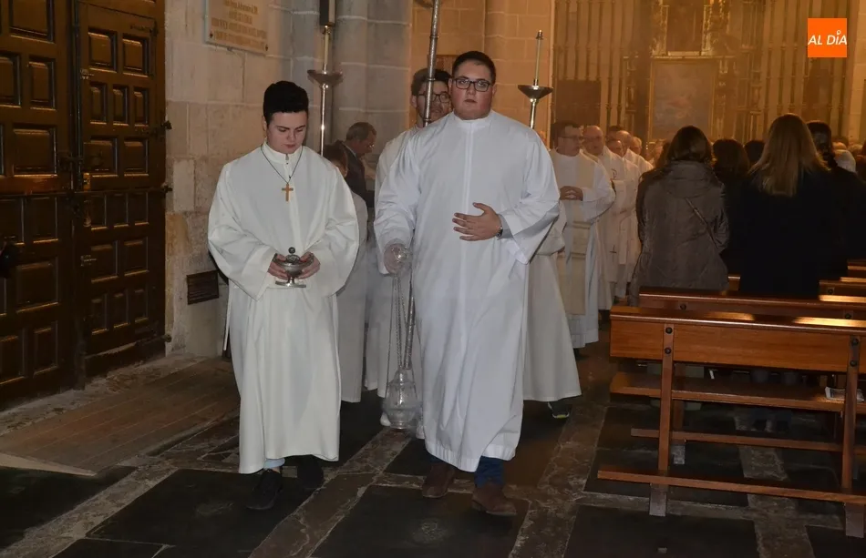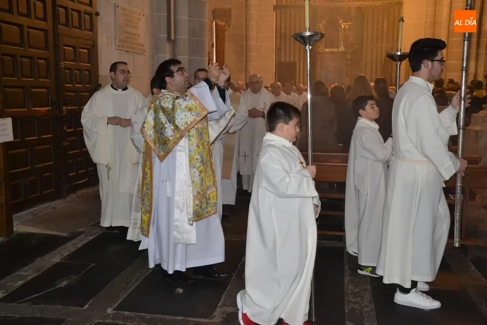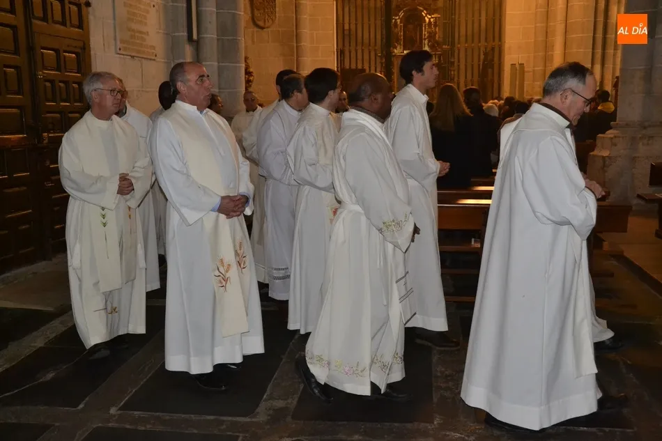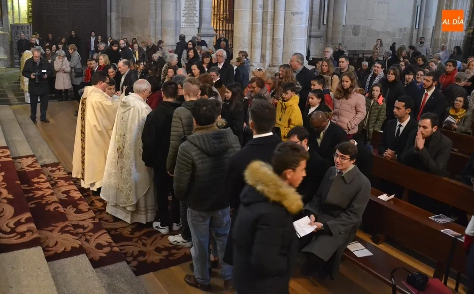 La primera parte de la celebración transcurrió con normalidad, siendo el primer punto diferente cuando, antes de la homilía de Jesús García Burillo, Efraín Peinado fue presentado como aspirante al Sacerdocio por parte del rector del Seminario Diocesano, Juan Carlos Sánchez.
