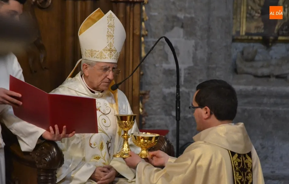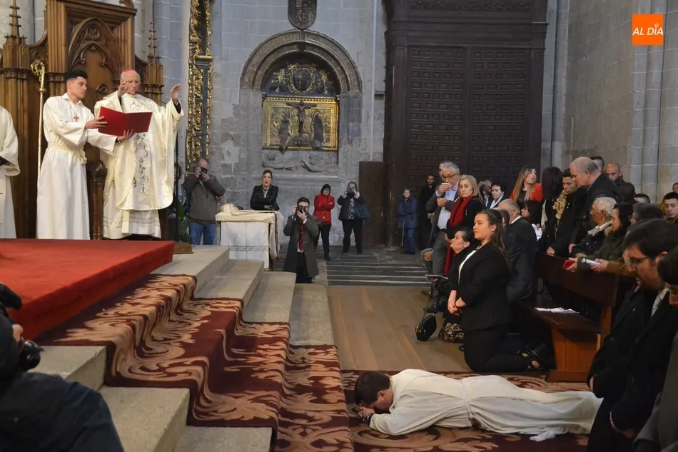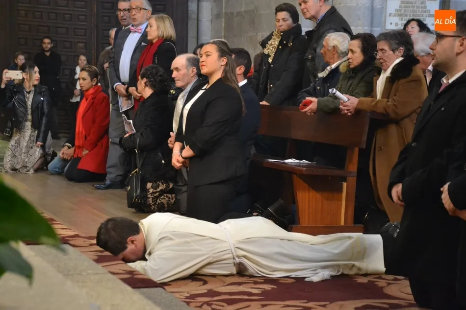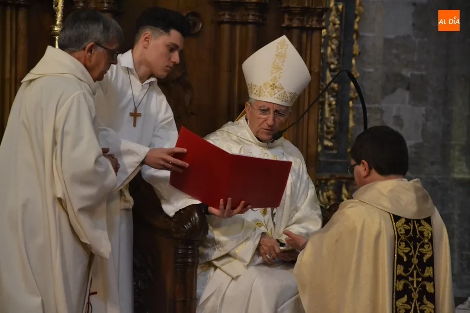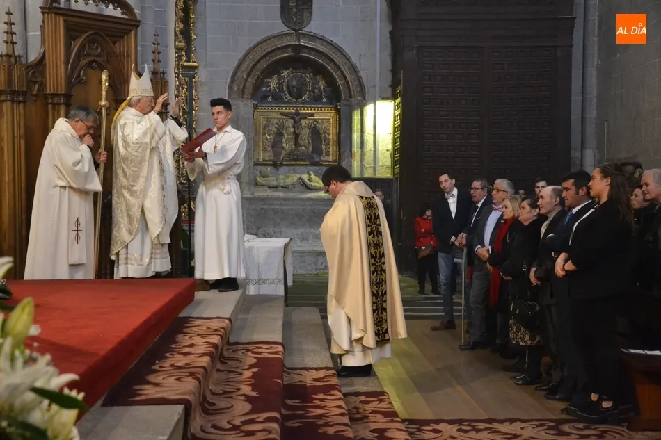 La Catedral de Santa María de Ciudad Rodrigo acogió durante la mañana del sábado la Ordenación Sacerdotal del joven Efraín Peinado Hernández, el último de los jóvenes que tenía la Diócesis en camino al Sacerdocio. La celebración fue presidida por el Administrador Apostólico de la Diócesis, Jesús García Burillo, junto al Obispo emérito de Sigüenza-Guadalajara, el guinaldés José Sánchez, y al antiguo Obispo de Ciudad Rodrigo Julián López, que sigue como prelado de la Diócesis de León.