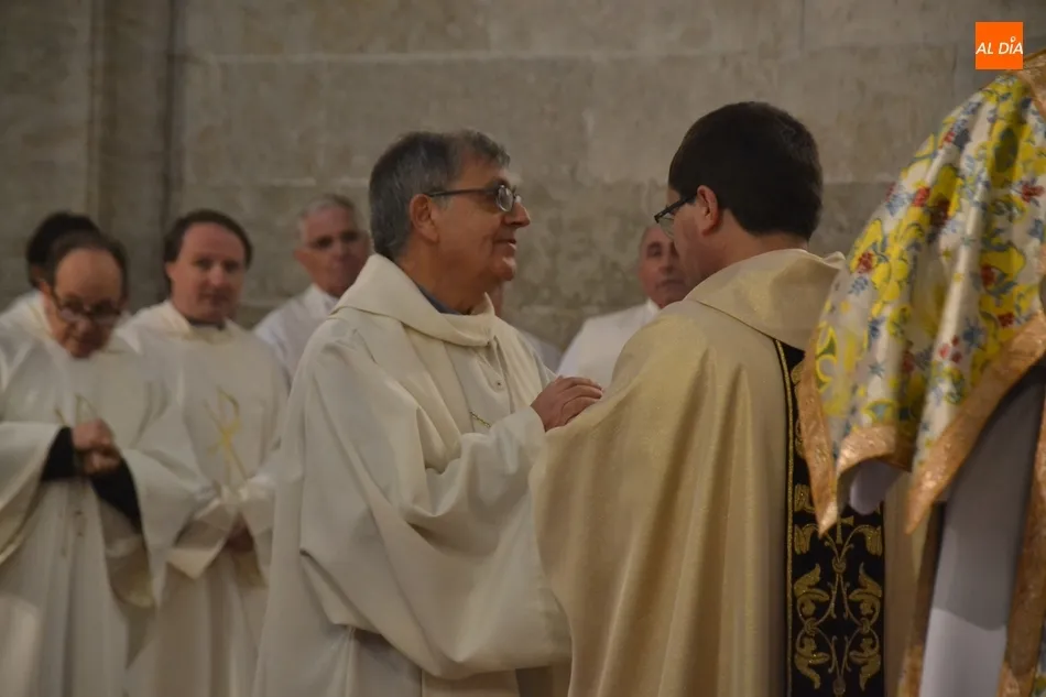La celebración concluyó con la lectura de la Bendición emitida por el Papa Francisco. A continuación, Efraín Peinado recibió los saludos de todos los asistentes, buena parte de los cuales se trasladaron al Seminario Diocesano para disfrutar de un vino español. Efraín Peinado presidirá su primera misa este domingo 24 a las 18.00 horas en su localidad natal, Castillejo de Martín Viejo.