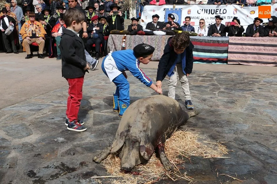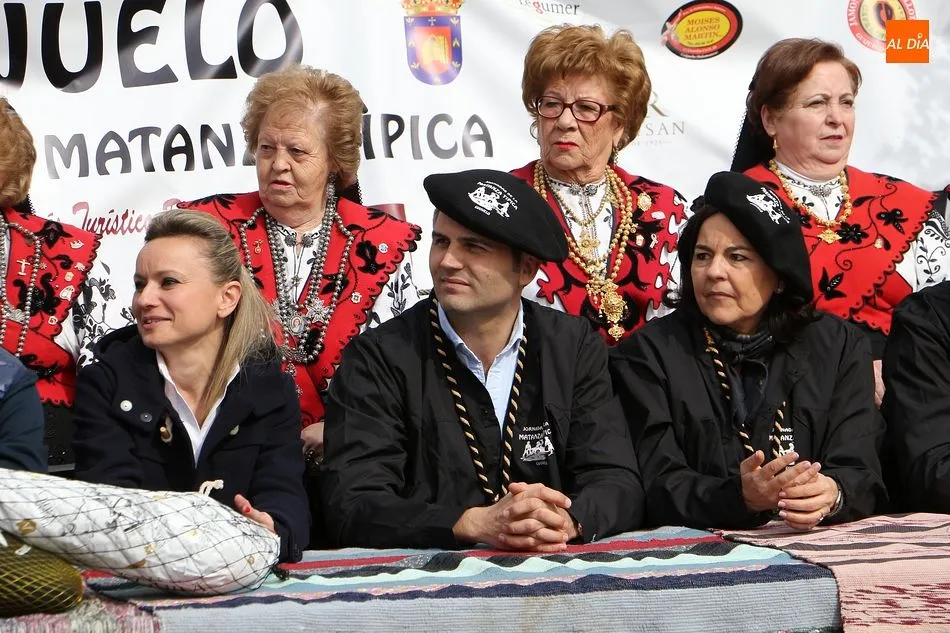 El organizador, Jesús Merino, dio la bienvenida a todos, y estuvo acompañado por habituales de la fiesta como las periodistas Marta Jaumandreu, Ana Samboal, Pepa Chacón y el actor Pepe Ruíz. También sirvieron de anfitriones los concejales del Ayuntamiento de Guijuelo, Ángel Picado y Sandra Méndez. No faltaron las águedas, la música de la gaita y el tamboril y las tradicionales degustaciones mientras se procedía al despiece del animal, sacrificado fuera de la vista del público, como señala la legislación vigente.