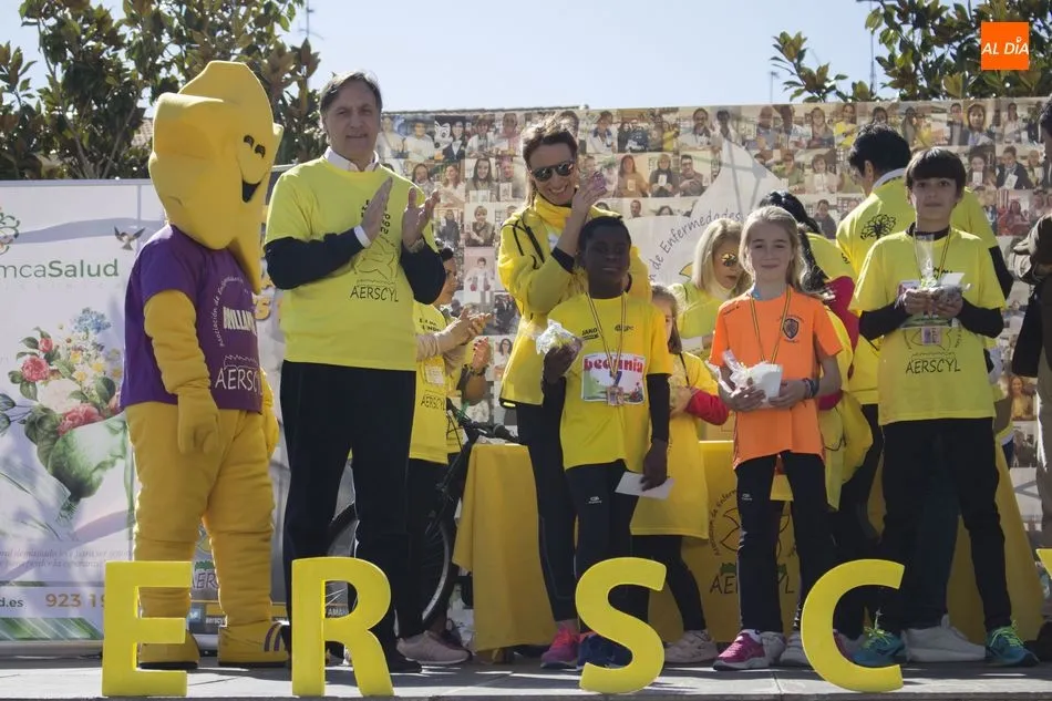 La tercera edición de la Marea Amarilla a favor de Aerscyl se ha celebrado esta mañana con la presencia de un millar de personas. El alcalde, Carlos García Carbayo, ha estado en la salida de la carrera participativa en la que numeroso público ha participado para colaborar en la lucha contra las enfermedades raras.