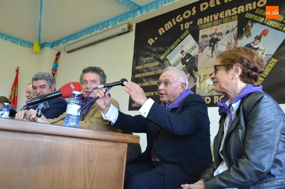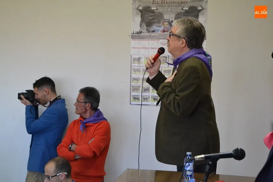 Antes de iniciar su intervención, el acto, presentado por Lauren Risueño, contó con la intervención ya mencionada de Carlos García Medina, y del presidente de la Asociación, Tato Galerías, quién hizo su habitual ronda de saludos, abrazos, rezos (?para que no haya cogidas en Carnaval?), y vivas a los Amigos del Alguacilillo, Ciudad Rodrigo y España.