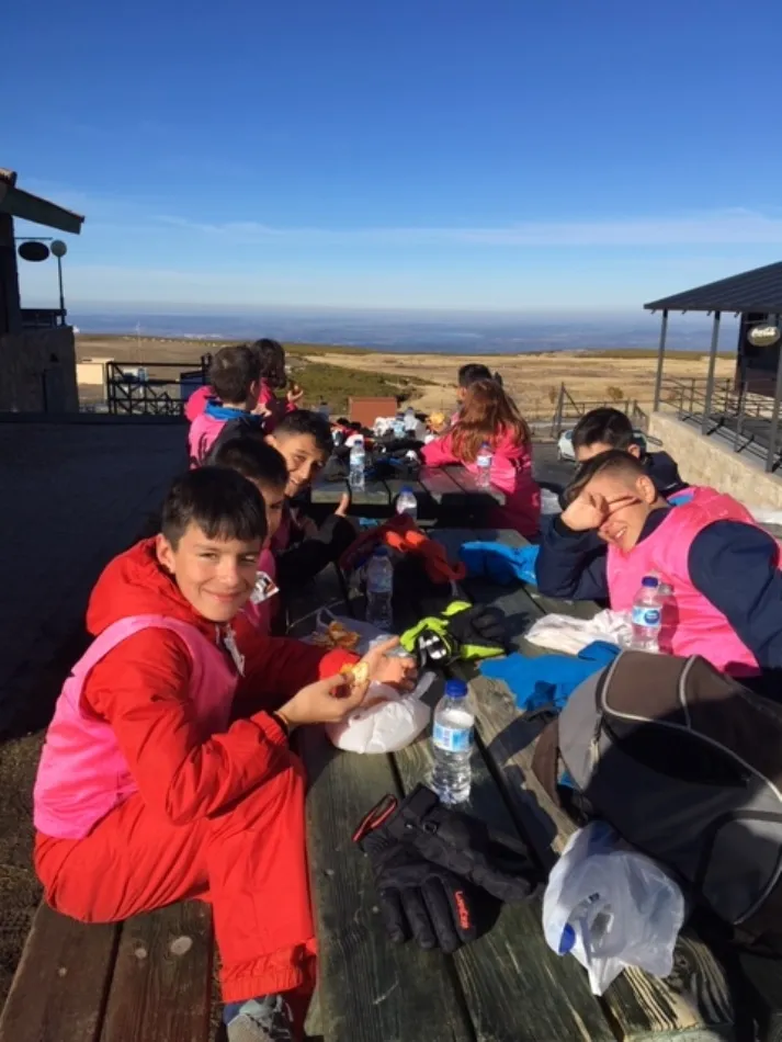 A las cinco, directos al albergue de Peña Negra, al lado de Llano alto, donde compartíamos estancia con otros tres colegios, ?Colegio Francisco Vitoria?, ?Colegio las Jesuitinas? y el? Colegio Santa Teresa?. Debido a las obras en el albergue de Candelario, este año tuvimos que cambiar nuestro alojamiento habitual. Reparto de literas, los más futboleros se animan con un partido improvisado, nos duchamos y a cenar. Un rato de juegos y charla y las 23:00 horas todos a las literas, en pocos minutos están dormidos, ¡Ha sido una jornada llena de emociones!