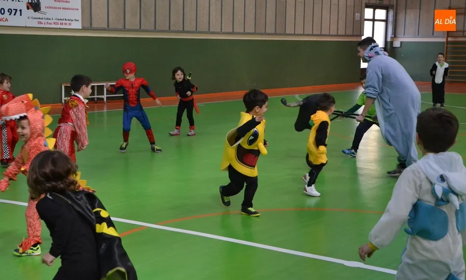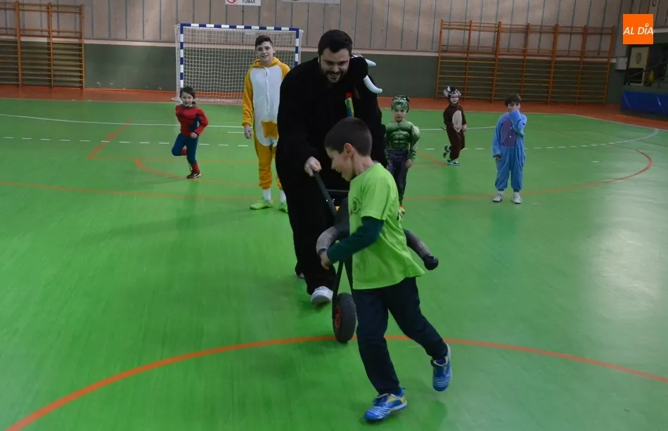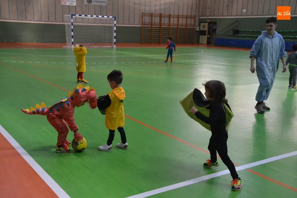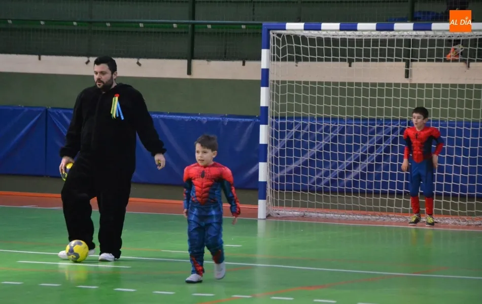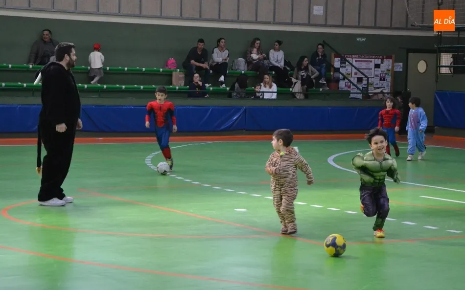 Los chavales tuvieron puestos los disfraces en todo momento, realizando también con ellos los habituales ejercicios con y sin balón, incluido el partidillo con el que concluyó la sesión.