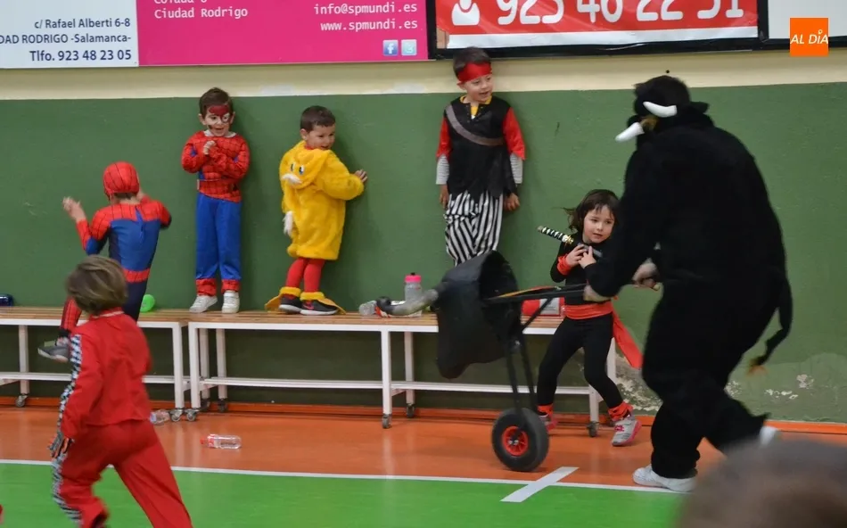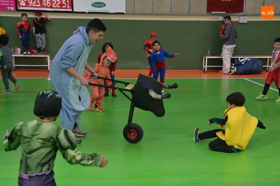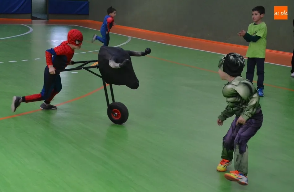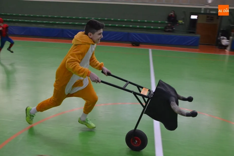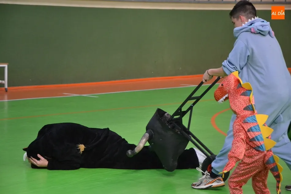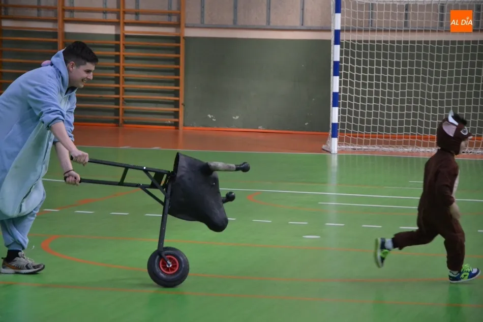 La gran novedad de la celebración precarnavalera de este año de la Escuela del III Columnas fue que se contó con un carretón con el cual se pudo realizar el primer encierro del Carnaval 2019. Durante el mismo, los monitores (Luis José Benito, Alejandro Marquiz y Javi Ortega) recrearon incluso una pegada de los forcados portugueses.