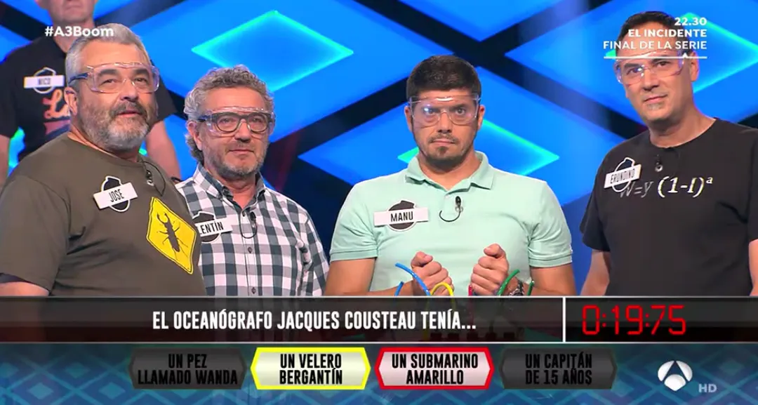 Tres meses después, a mediados de mayo de 2017, aterrizó en ¡Boom! con el equipo de Los Lobos junto a otros tres exconcursantes de Saber y Ganar: Manu, Valentín y Erundino. Según comentó Valentín el pasado jueves en la visita de Los Lobos a El Hormiguero, él le envió una carta manuscrita para invitarle a unirse al equipo a Casillas de Flores, sin poner la dirección ya que no la sabía, con la esperanza de que le llegase. La misiva llegó y rápidamente José Pinto llamó a Valentín para unirse a la aventura de ¡Boom!, en cuyo seno se hicieron populares las perronillas que llevaba cada vez que iban a grabar.