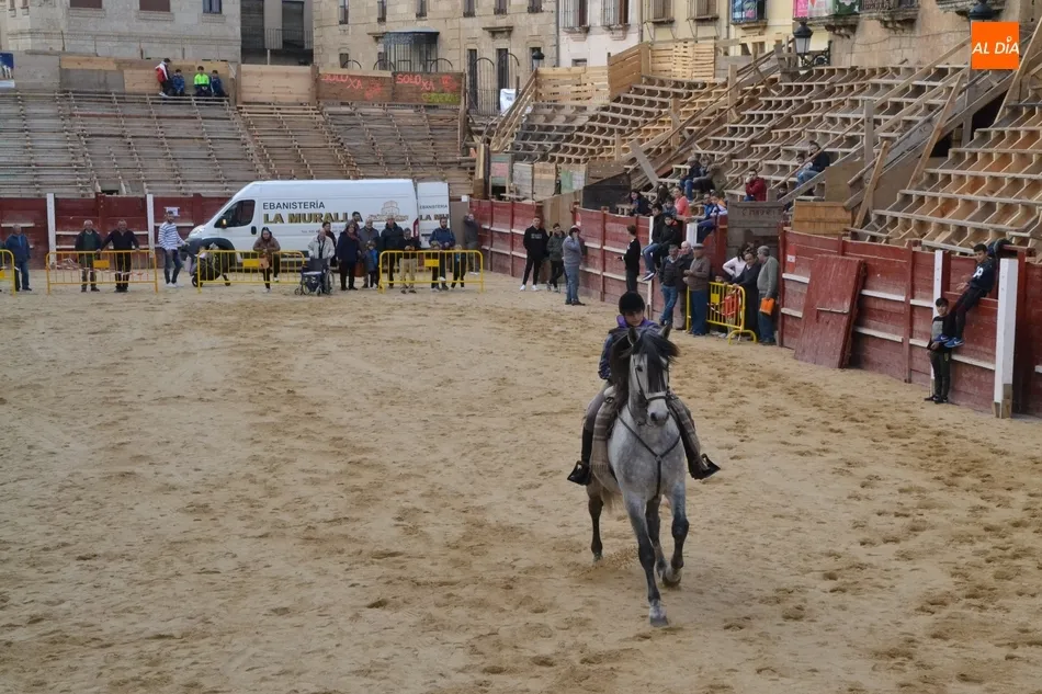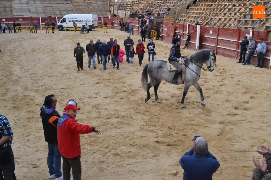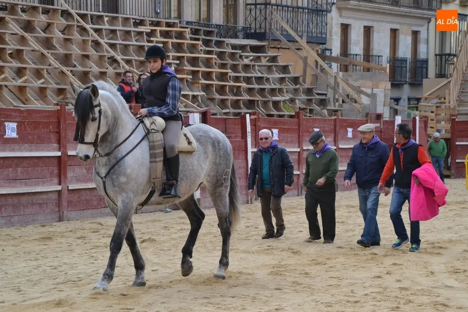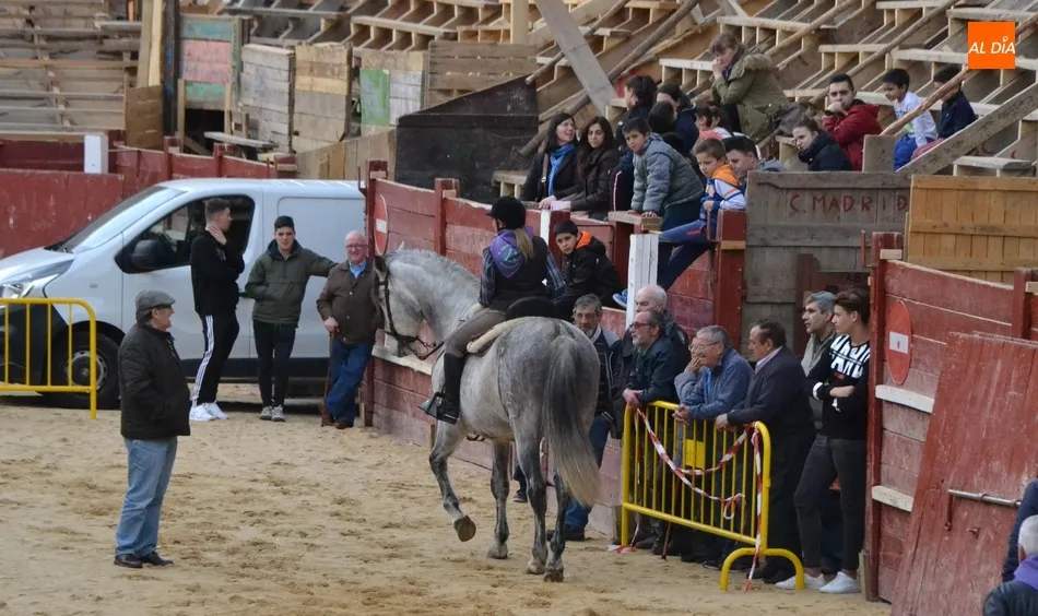 La Asociación de Amigos del Alguacilillo llevó a cabo durante la tarde del Jueves de Casetas la tradicional prueba del caballo, que tiene como finalidad que el caballo que montará la alguacililla Patricia Zamarreño desde el Sábado al Martes de Carnaval vaya conociendo la Plaza Mayor mirobrigense, especialmente su arena.