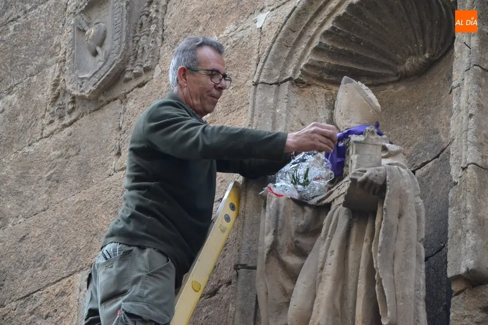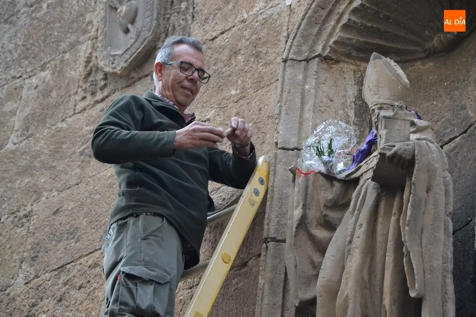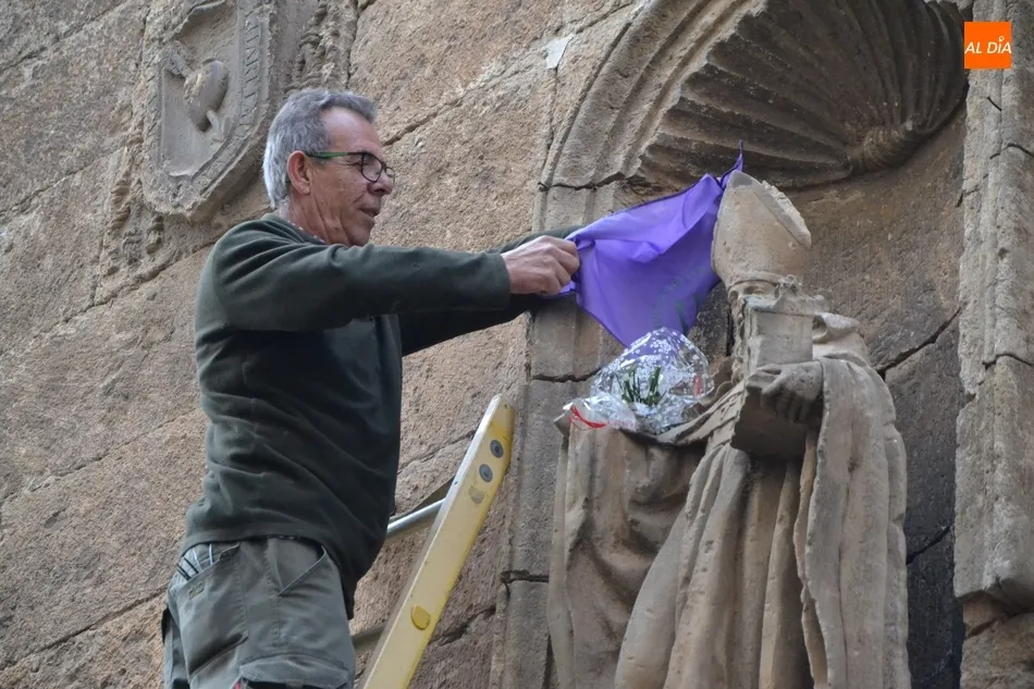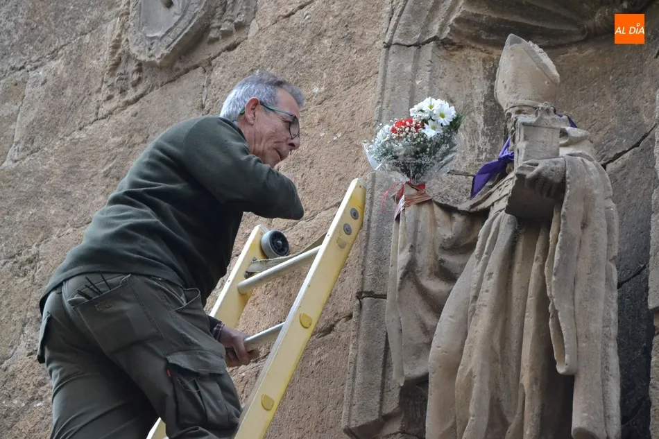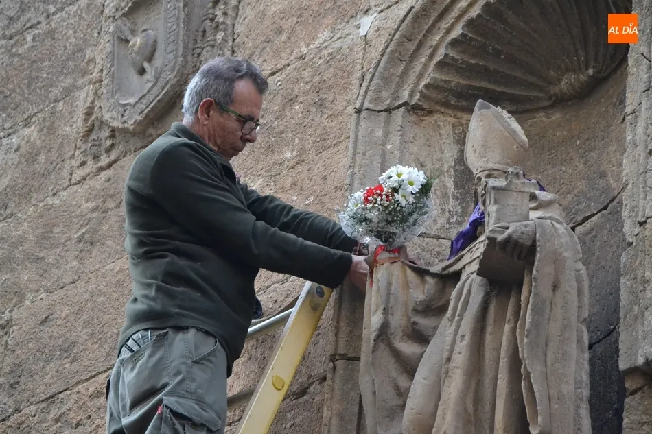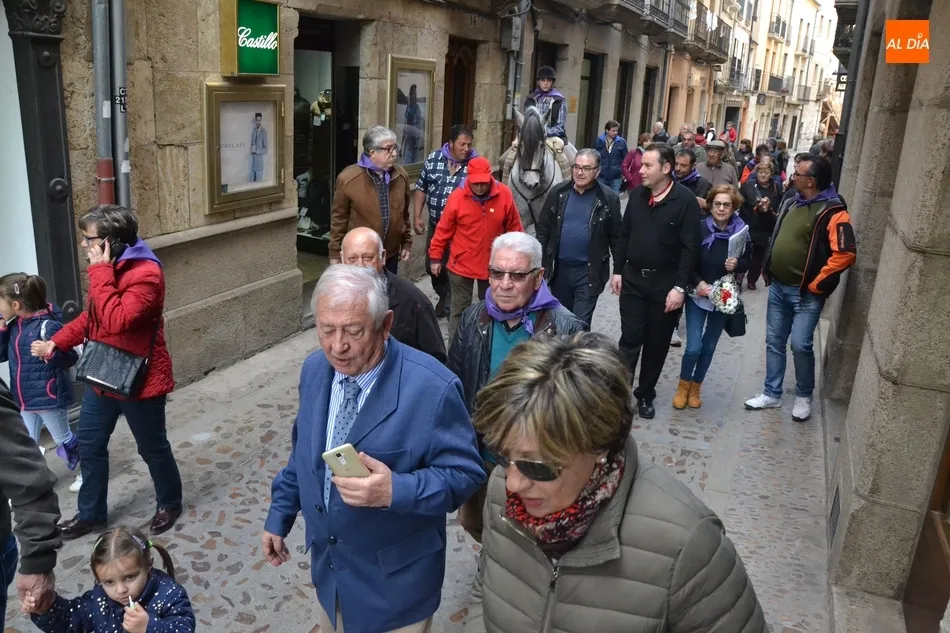 A continuación, los Amigos del Alguacilillo, incluida la alguacililla y su caballo, se acercaron a las puertas de la Iglesia de San Agustín, para proceder a realizar el segundo de los actos que lleva a cabo todos los años la Asociación en la tarde del Jueves de Casetas: la colocación del pañuelo de la entidad a la imagen de San Agustín que hay en la fachada. Asimismo, también se le colocó un ramo de flores.