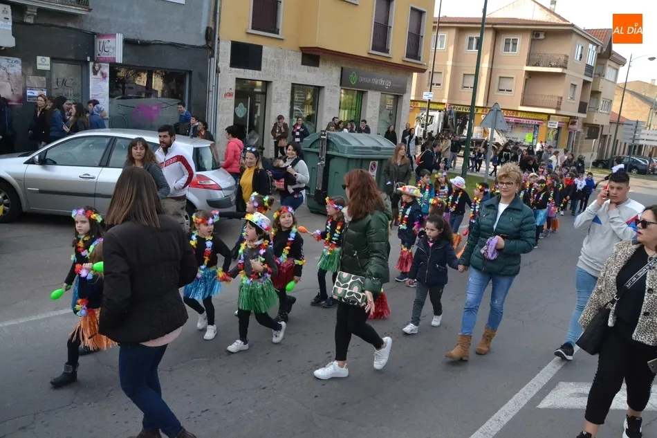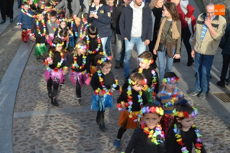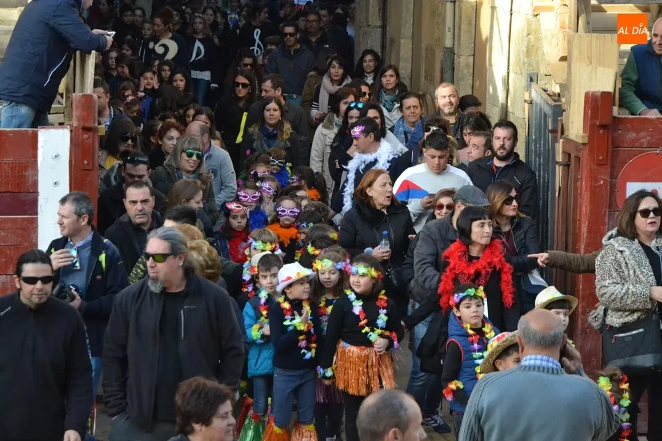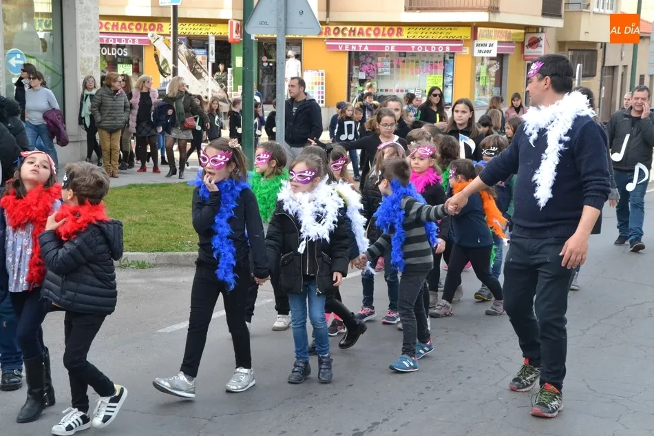 Este año, la temática escogida por la Escuela de Música para su pasacalles han sido otros grandes carnavales del mundo, uniendo de este modo el Carnaval del Toro de Ciudad Rodrigo con los de Tenerife, Venecia o Río de Janeiro. En este sentido, los niños fueron ataviados con motivos alusivos a esos lugares.