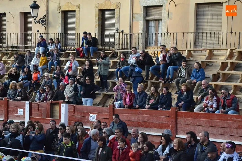 Como es lógico, los alumnos de la Escuela estuvieron acompañados en su discurrir por las calles mirobrigenses por numerosos familiares, que por supuesto también asistieron a la actuación posterior en la Plaza Mayor, donde se habilitó una zona exclusiva para los bailes. Como se puede ver en las imágenes, muchos de esos familiares optaron por subirse a los tablaos para seguir mejor lo que allí acontecía, que fue presentado canción a canción por el director de la Escuela, José Carlos Pérez de Burgos.