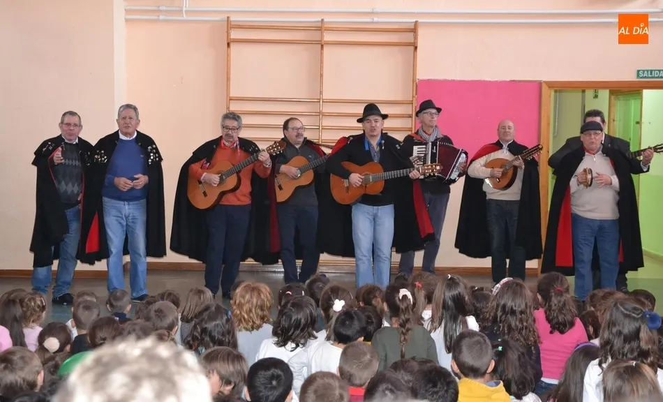Varios integrantes de la Rondalla III Columnas volvieron a coger sus instrumentos en la mañana del jueves para realizar tres actuaciones en otros tantos centros. Concretamente, a lo largo de la mañana los murguistas estuvieron (en este orden) en el Colegio San Francisco, en el Centro Ocupacional de Asprodes en Sanjuanejo y en el Colegio Miróbriga. En cada uno de esos lugares, la Rondalla interpretó canciones muy populares como el Somos del Puente o La Campana Gorda, para delicia de sus oyentes.