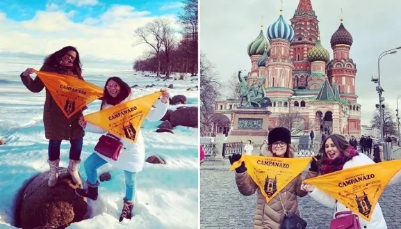 Justo en las horas previas al arranque del Carnaval, el espíritu carnavalero ha llegado nada más y nada menos que hasta Moscú, de la mano de dos mirobrigenses, Eva Merino y María Hernández, que han viajado hasta la capital rusa con pañuelos del Campanazo incluidos, con los que han posado, por ejemplo, en la emblemática Plaza Roja moscovita.