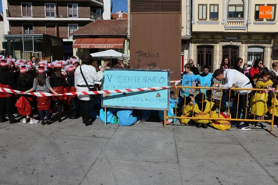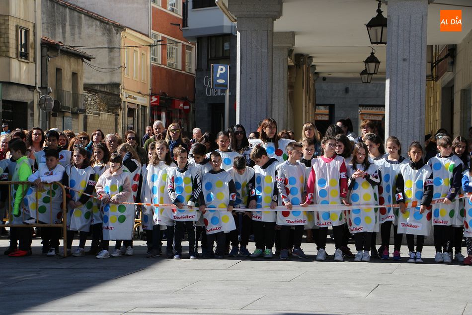 Los escolares de Guijuelo se han sumado esta mañana al carnaval de la villa con una de las actividades más multitudinarias de los festejos, el desfile desde los colegios de la villa hasta la Plaza Mayor. Tanto los alumnos del Colegio Miguel de Cervantes como los del Filiberto Villalobos se citaron a mediodía en el ágora de la villa con sus coloridos disfraces para mostrarlos a todos los vecinos que decidieron acercarse a participar de la fiesta.