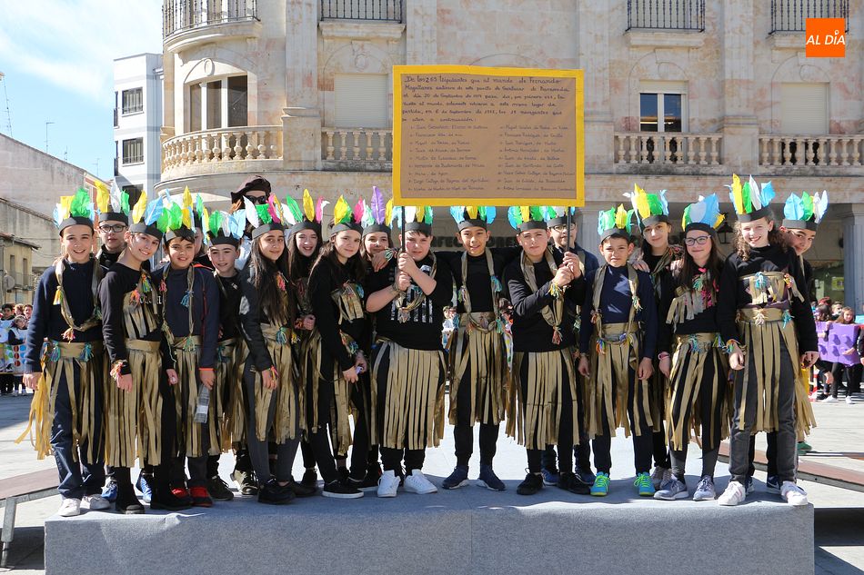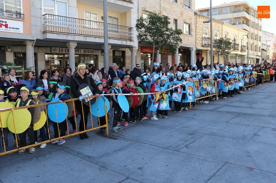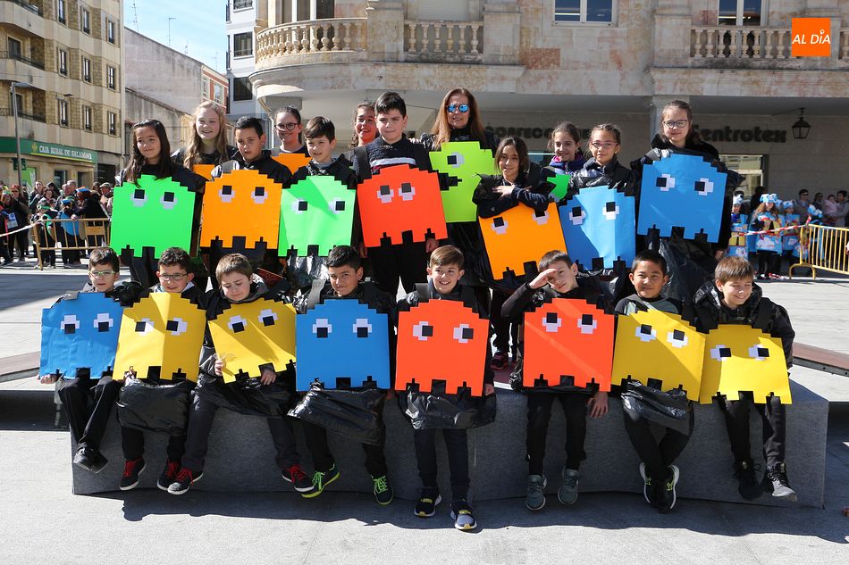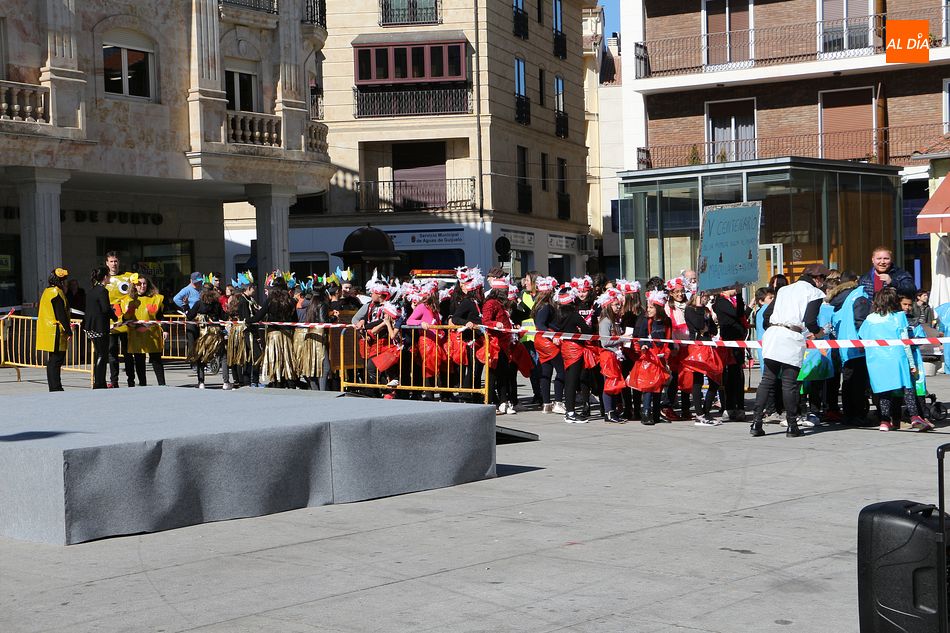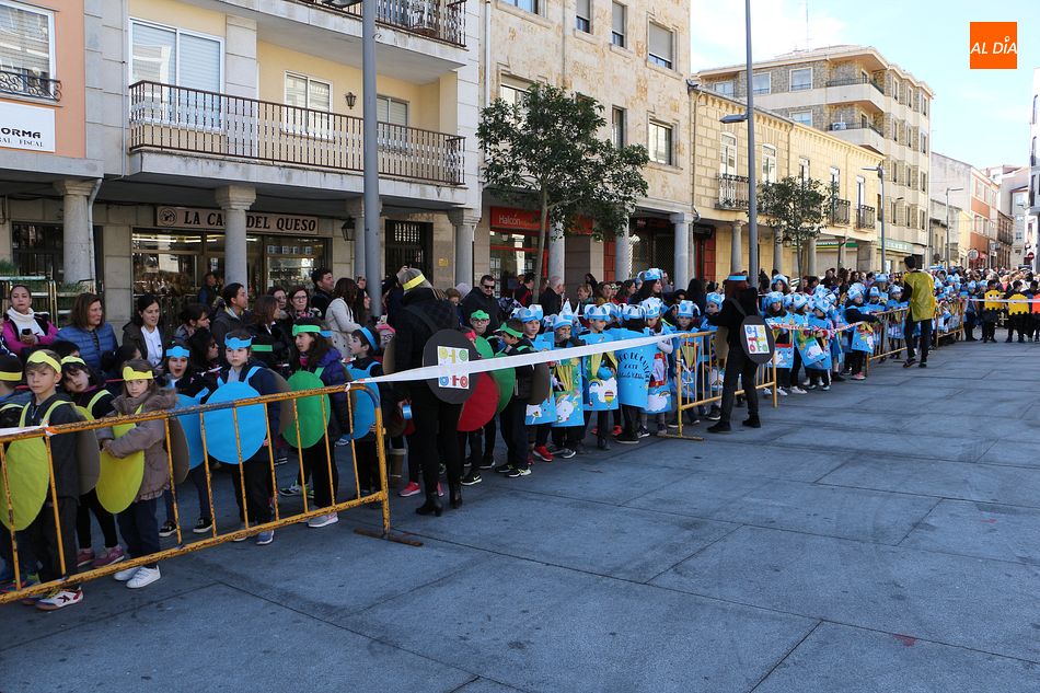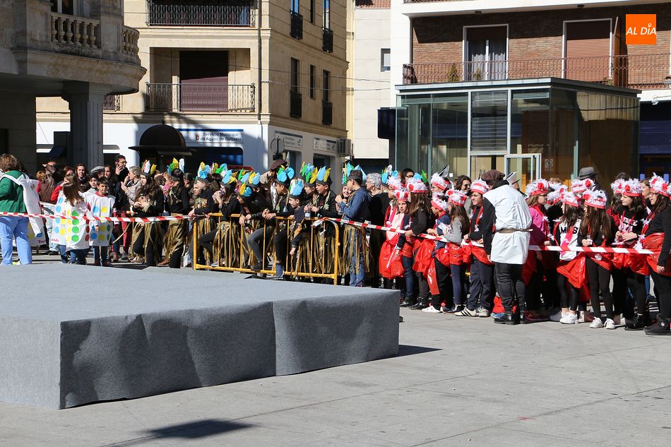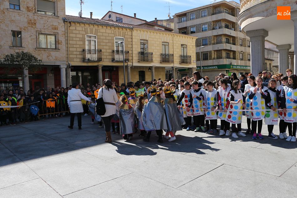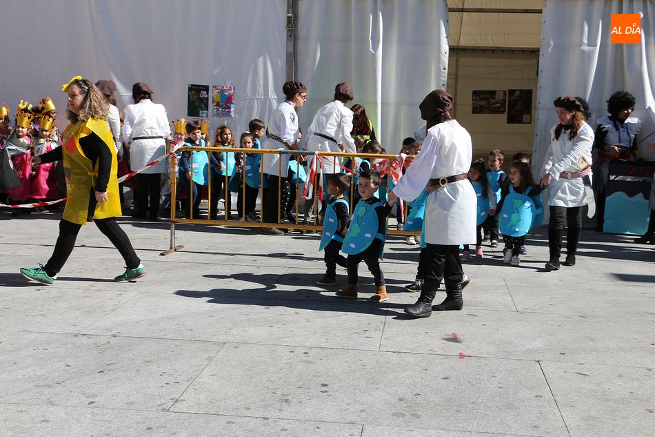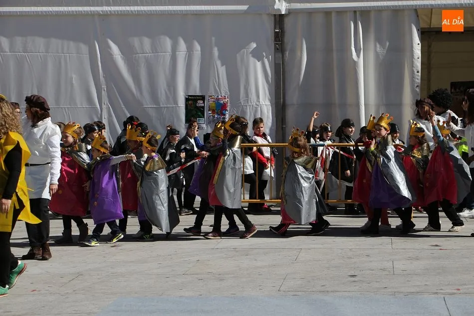 Los alumnos del colegio Miguel de Cervantes y los del Filiberto Villalobos desfilaron con sus disfraces hasta la Plaza Mayor