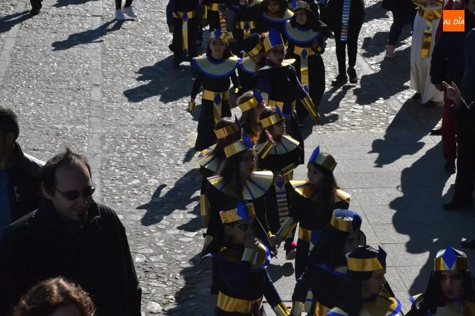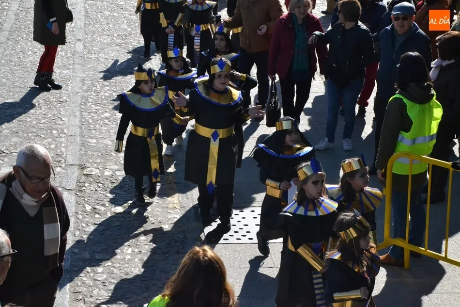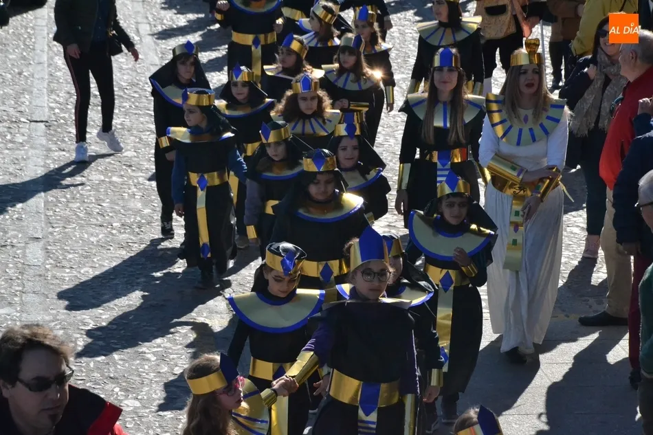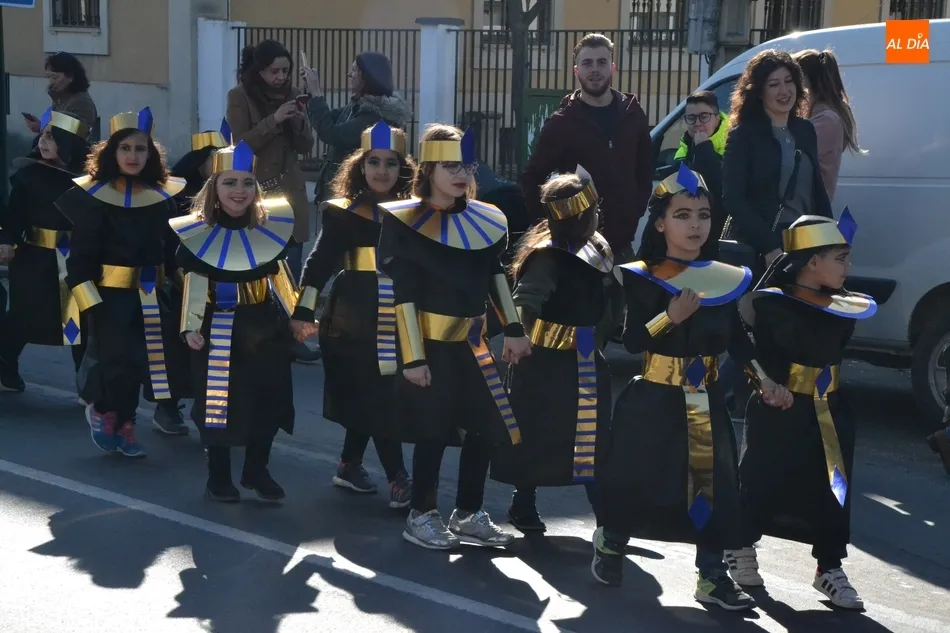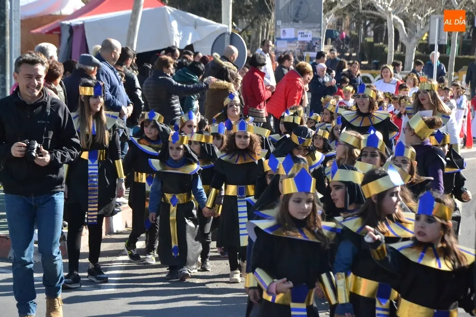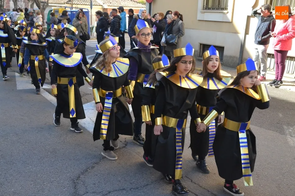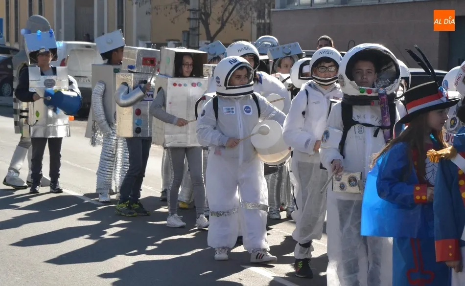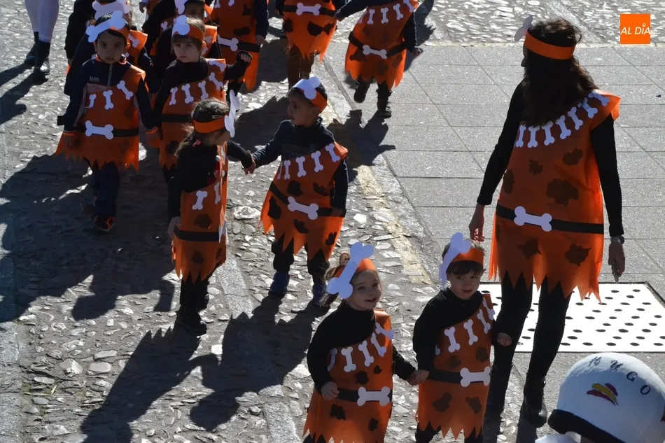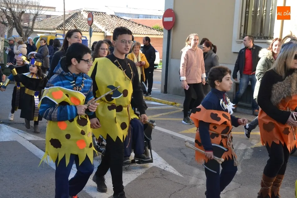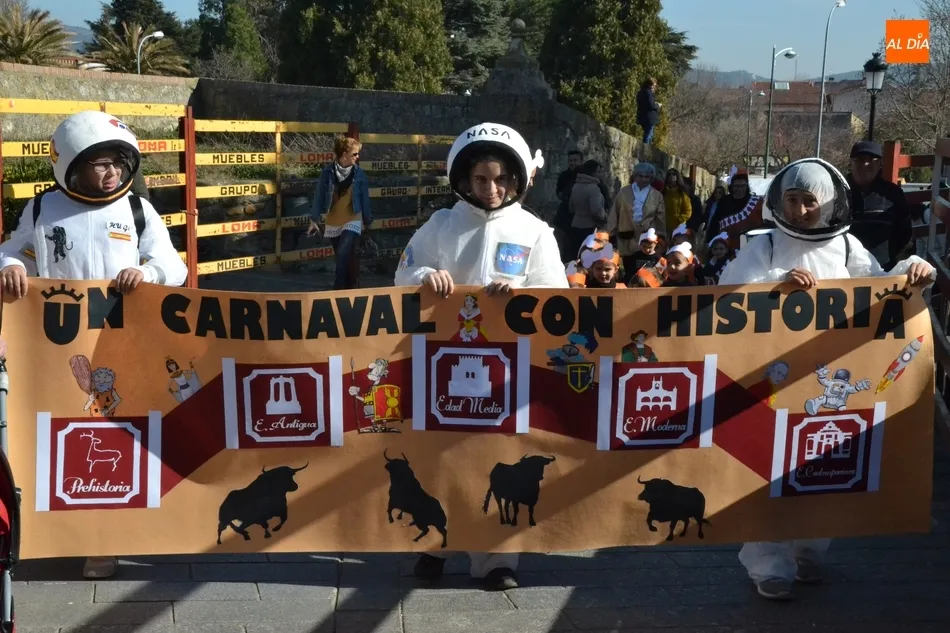 Un cumpleaños, un paseo por la historia y un bosque llenan de colorido las calles   | Imagen 1Los primeros en ponerse en marcha fueron los alumnos del Colegio San Francisco, que siguiendo la temática histórica que tiene este año el curso en el centro, se disfrazaron de personajes de las distintas etapas de la historia. De este modo, los alumnos de Educación Infantil y Educación Especial fueron disfrazados de hombres de la Prehistoria con huesos y útiles, mientras que los alumnos de Educación Primaria fueron de egipcios, romanos, caballeros y princesas medievales, conquistadores, carabelas, soldados franceses, astronautas e incluso robots.