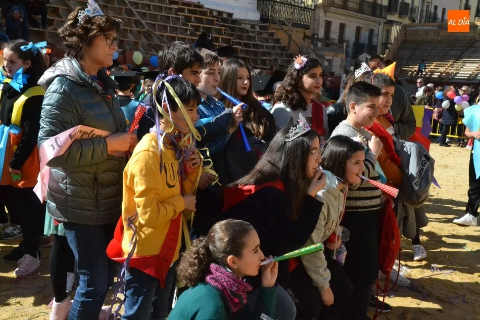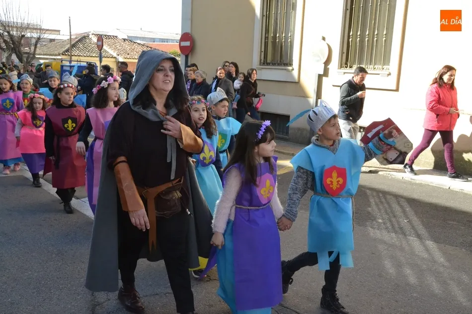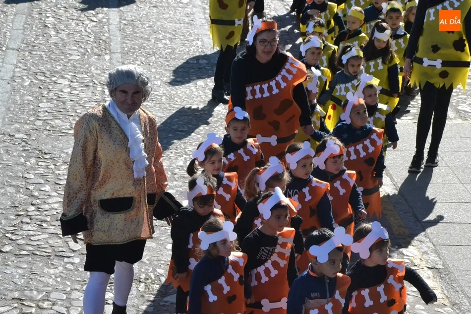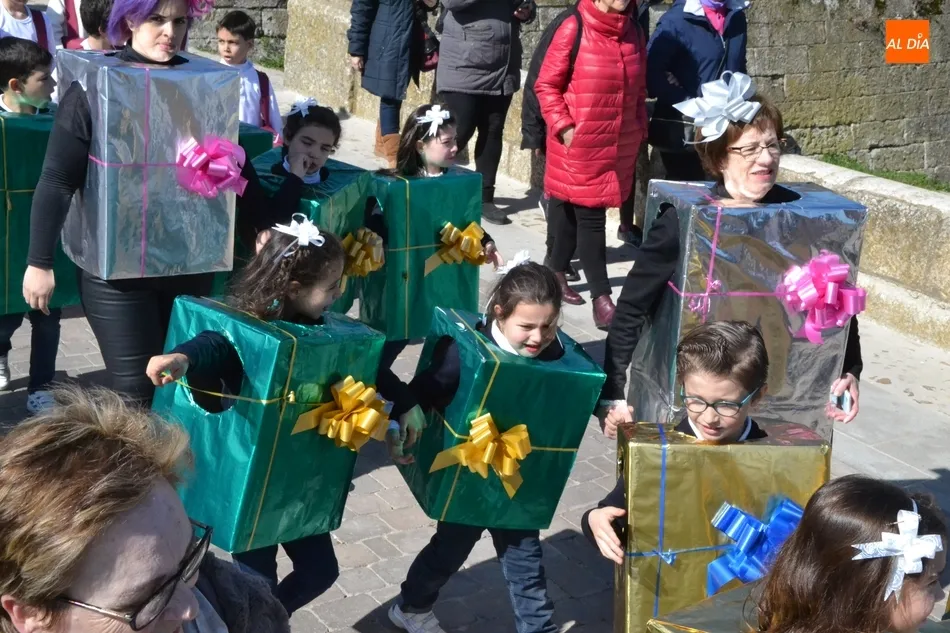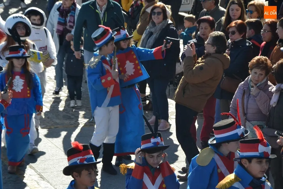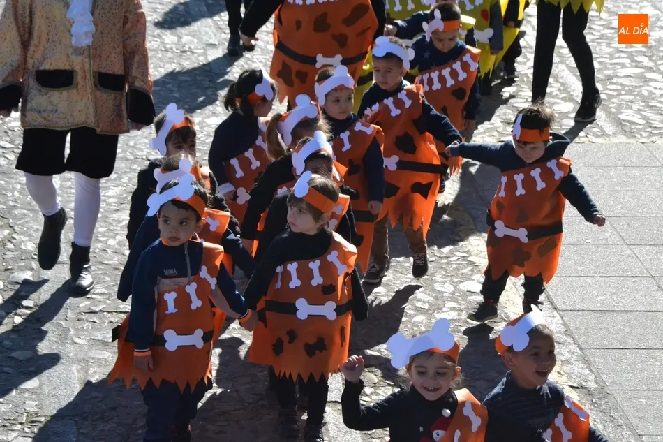 La esperadísima jornada del Viernes de Carnaval tuvo como primeros protagonistas como mandan los cánones a los niños de los colegios mirobrigenses, quienes salieron de sus centros durante la mañana para desarrollar sus tradicionales pasacalles festivos, que fueron acompañados por infinidad de familiares, además de otros cuantos mirobrigenses que quisieron disfrutar del ambiente para ir iniciando el Carnaval.