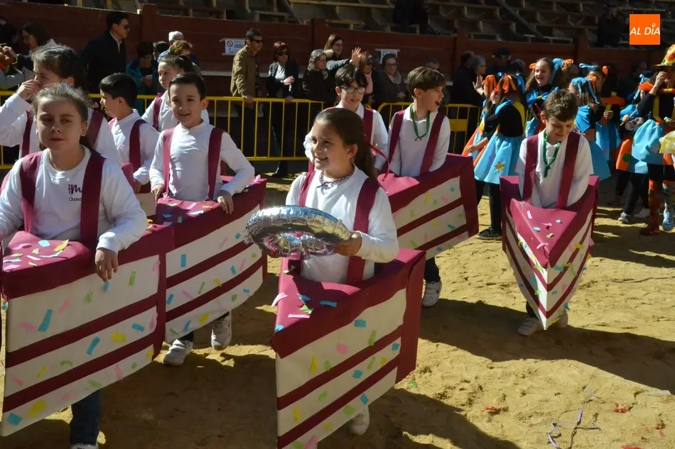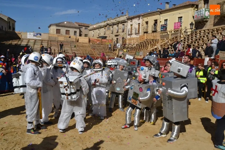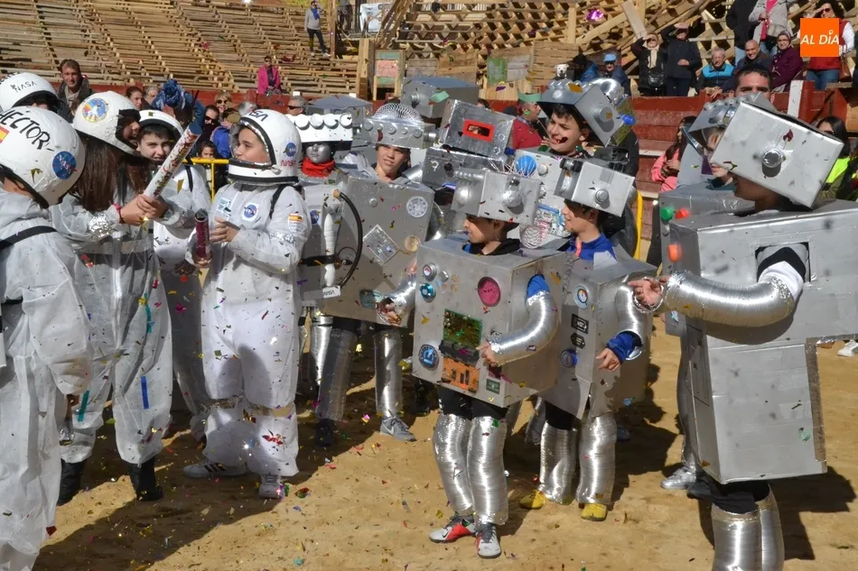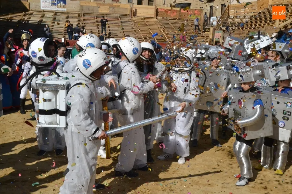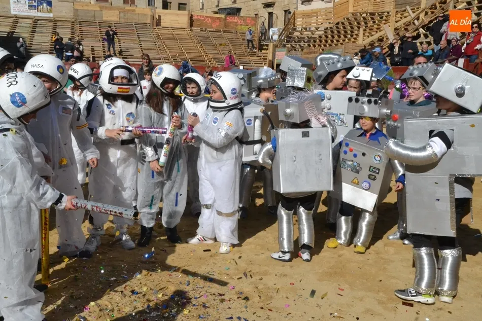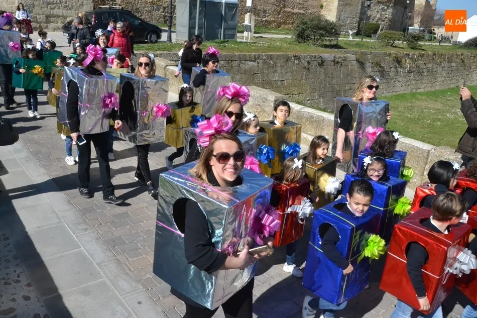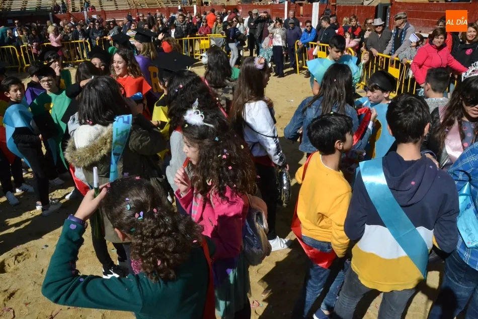 La esperadísima jornada del Viernes de Carnaval tuvo como primeros protagonistas como mandan los cánones a los niños de los colegios mirobrigenses, quienes salieron de sus centros durante la mañana para desarrollar sus tradicionales pasacalles festivos, que fueron acompañados por infinidad de familiares, además de otros cuantos mirobrigenses que quisieron disfrutar del ambiente para ir iniciando el Carnaval.