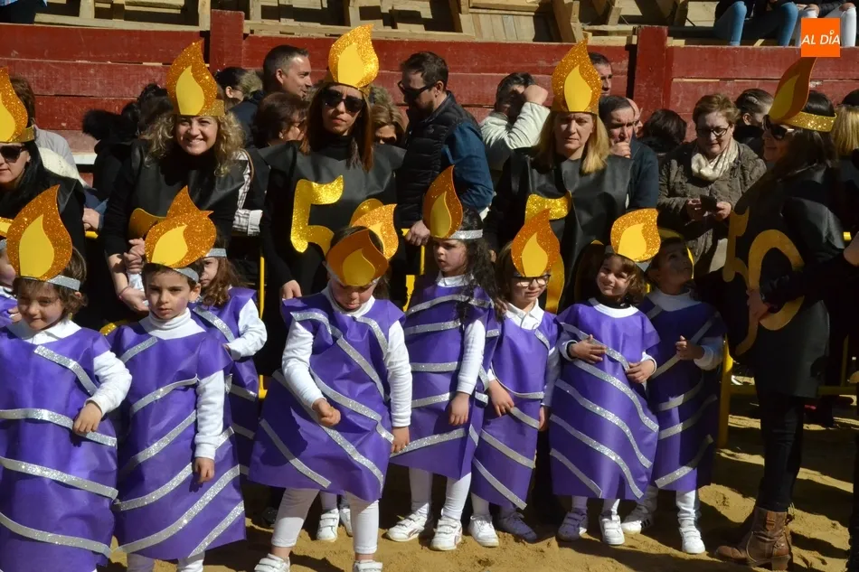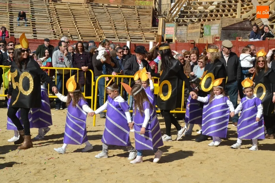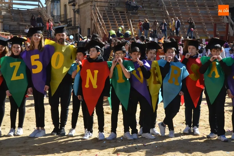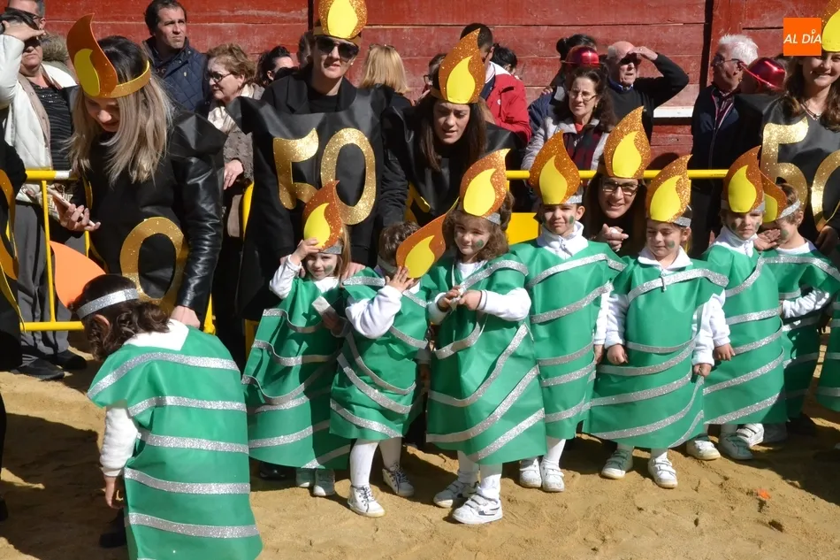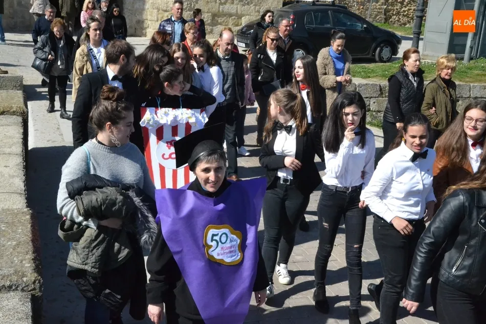 Como se puede ver en las imágenes, los alumnos (y sus profesores) iban de trozos de pastel, cajas de regalos, velas de tarta, payasos o cubos de palomitas. Los alumnos de uno de los grupos de Primaria lucían cada uno de ellos una letra para configurar la leyenda ¡Feliz 50 Aniversario!; mientras que los más mayores de Secundaria iban con trajes de fiesta. Tras un tiempo de baile en la Plaza, todos los presentes pusieron rumbo al Pabellón de la Avenida Conde de Foxá. Allí continuó la fiesta durante aproximadamente media hora más, incluyendo además un pregón a cargo de la actriz mirobrigense Pilar Borrego.