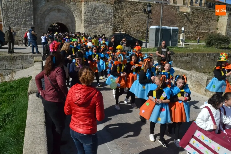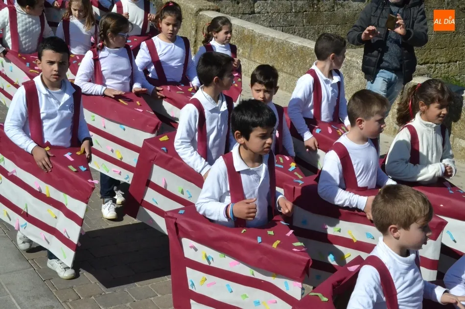 Un cumpleaños, un paseo por la historia y un bosque llenan de colorido las calles   | Imagen 2En el caso de este Colegio, sus alumnos de Educación Infantil y Primaria se pusieron en marcha en su centro de la Avenida Conde de Foxá en dirección a la Plaza Mayor, a donde entraron por la calle Madrid. Unos minutos antes, habían hecho acto de presencia los alumnos de Educación Secundaria del Colegio, procedentes de su centro ubicado en la calle Velayos. En el ágora, estaban esperando los miembros de las charangas que previamente habían acompañado al Colegio San Francisco.
