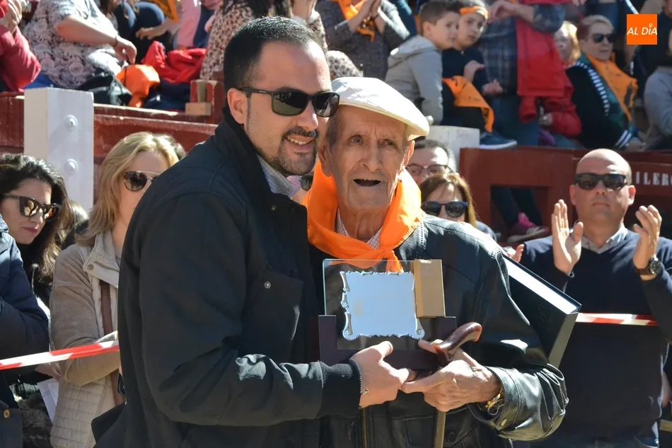 El homenajeado, que va camino de las 9 décadas de vida, llegó a besar la arena de la Plaza en señal de agradecimiento