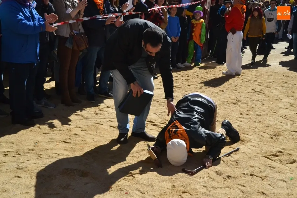 El homenaje consistió en la entrega de una placa por parte del presidente de la Comisión encargada de organizar el Carnaval, Cristian González. En señal de agradecimiento por el homenaje, Arturo Regalado se arrodilló para besar la arena del coso taurino mirobrigense.