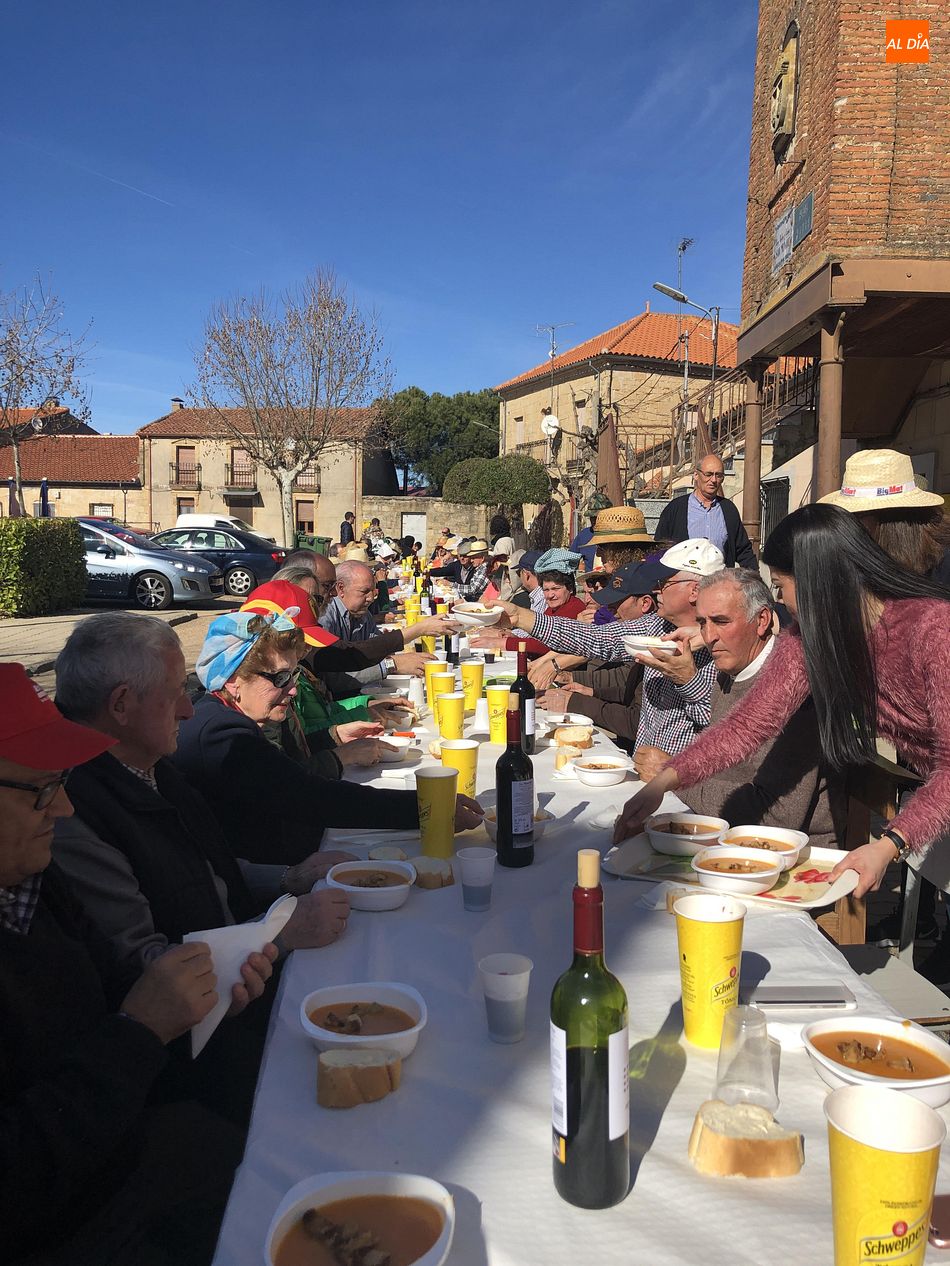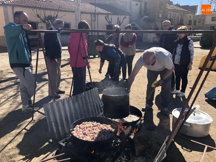 l. Una vez finalizadas las tareas chacineras, se han reunido cerca de 150 personas en la Plaza Mayor para degustar un menú de patatas meneadas y asaduras. El Ayuntamiento de la localidad ha puesto en marcha esta iniciativa con la ayuda de las asociaciones locales, y que concluirá por la tarde con un bingo y un baile.