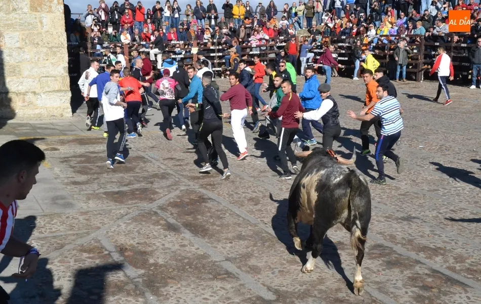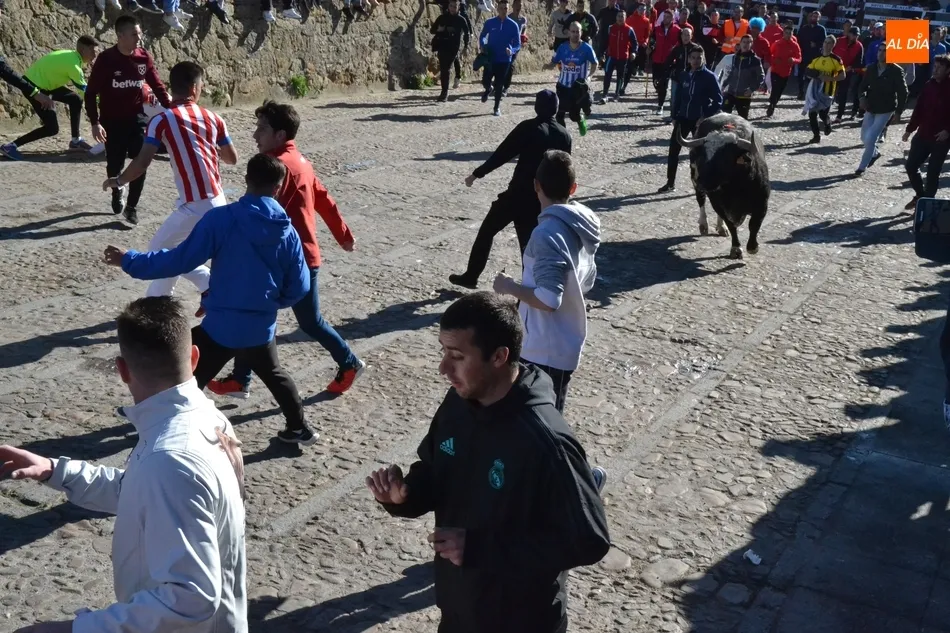 Tras una larguísima noche de fiesta a tope de público tanto en el interior de los establecimientos de hostelería como en la calle (gracias a la gran meteorología), Ciudad Rodrigo arrancó la serie de eventos del Sábado de Carnaval 2019 con el Toro del Antruejo, como ocurre desde el año 2011. Sin embargo, este año el evento traía una novedad importante, ya que por primera vez el astado tenía la posibilidad de llegar hasta la Plaza Mayor.