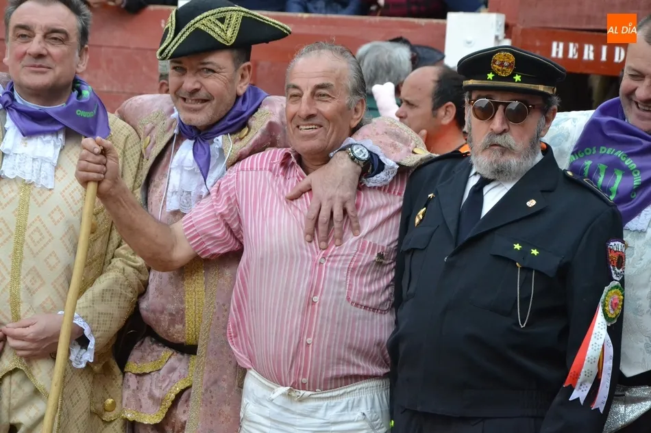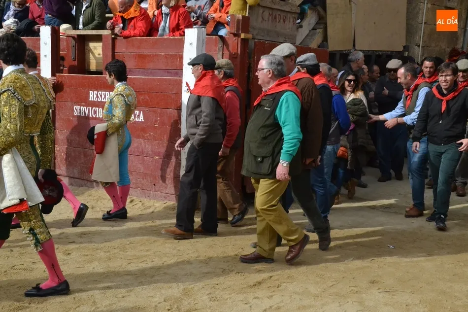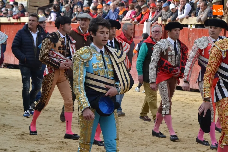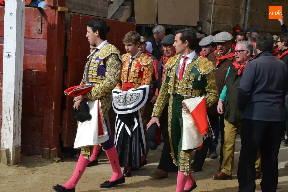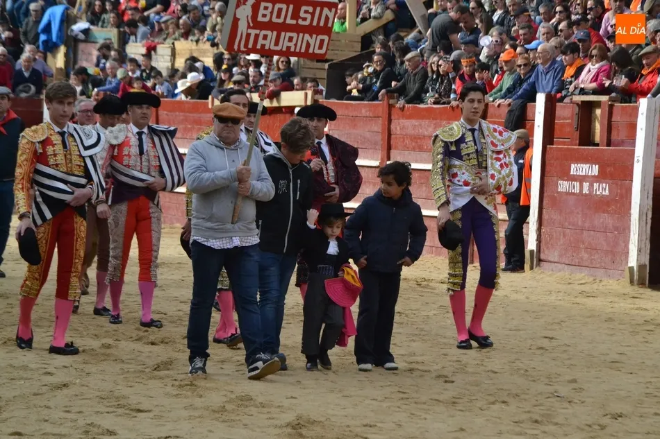 Precisamente, Arena en el Registro y sus acompañantes estaban en plena degustación cuando pasó por allí la comitiva del Bolsín Taurino en dirección a la Plaza Mayor. Al paso de esa comitiva fue llamando poderosamente la atención la indumentaria de los jóvenes protagonistas, ya que por primera vez vestían traje de luces. A esa hora, también realizó su paseíllo hasta la Plaza (bastante apurados de tiempo) los integrantes de la Asociación de Amigos del Alguacilillo.