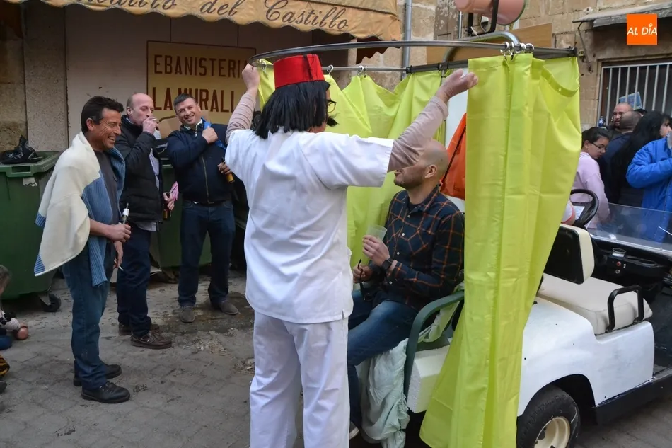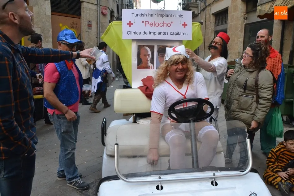 En este sentido, nada más concluir el encierro a caballo, comenzó el tiempo de asueto por establecimientos de hostelería de toda la ciudad, al mismo tiempo que unas cuantas personas acudían a ver la capea al ágora y otras incluso empezaban a coger ya sitio para el desencierro de última hora de la mañana. En este tramo matinal, se pudo empezar a ver el original montaje preparado por Joaquín Pellicer y Chuchi Cubas, quiénes se transformaron en dos cirujanos turcos para ir implantando pelo a todos aquellos que lo necesitaban.
