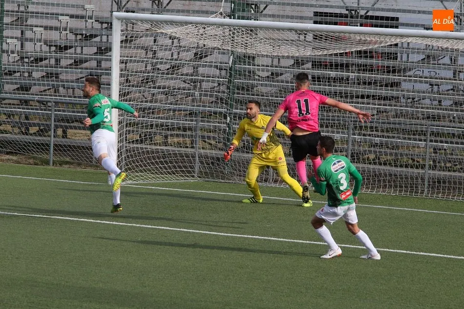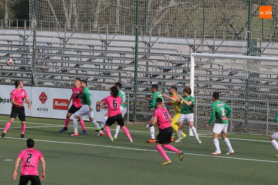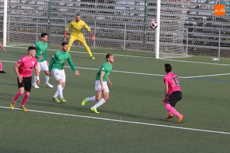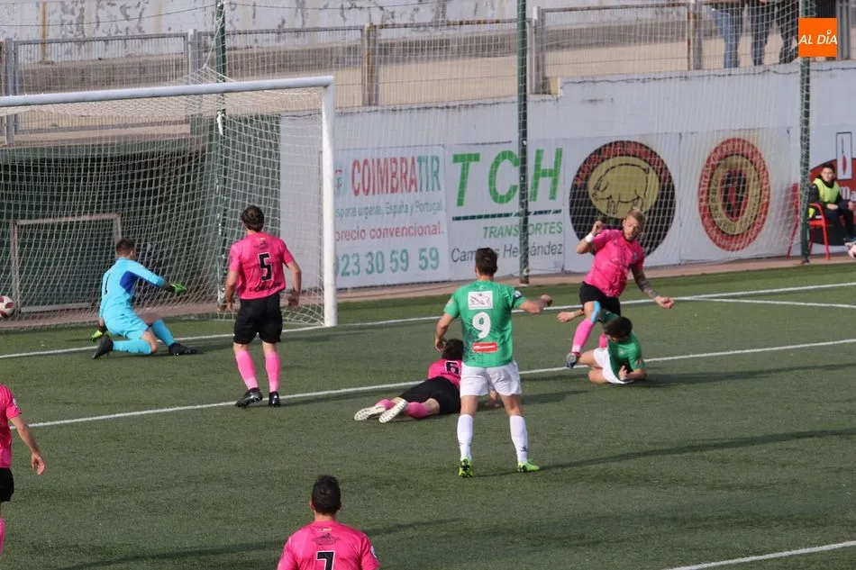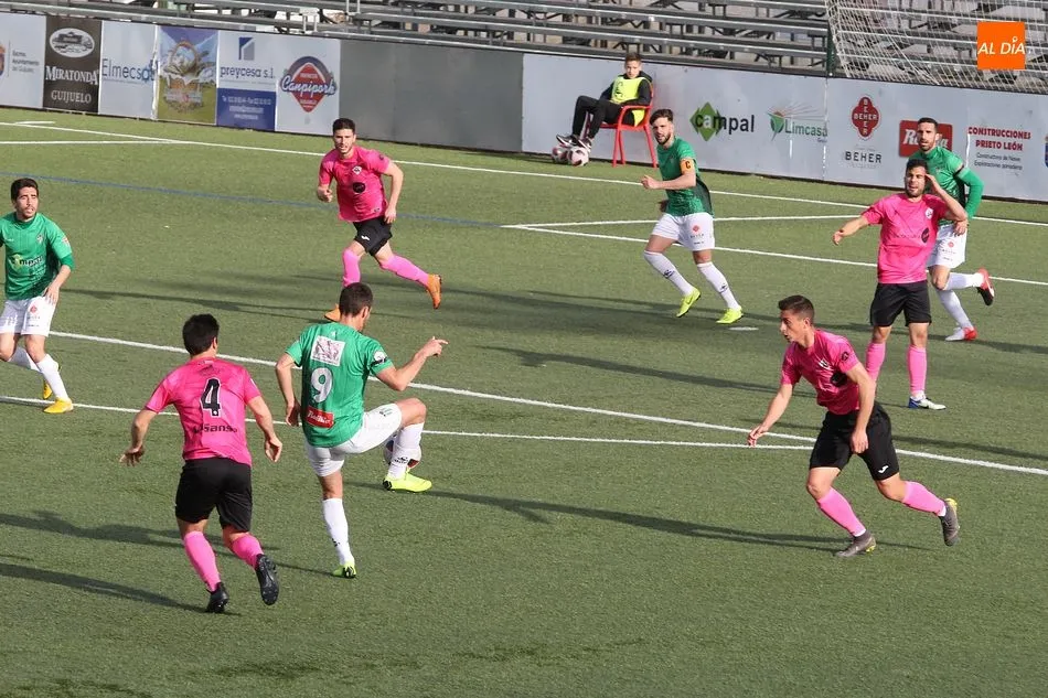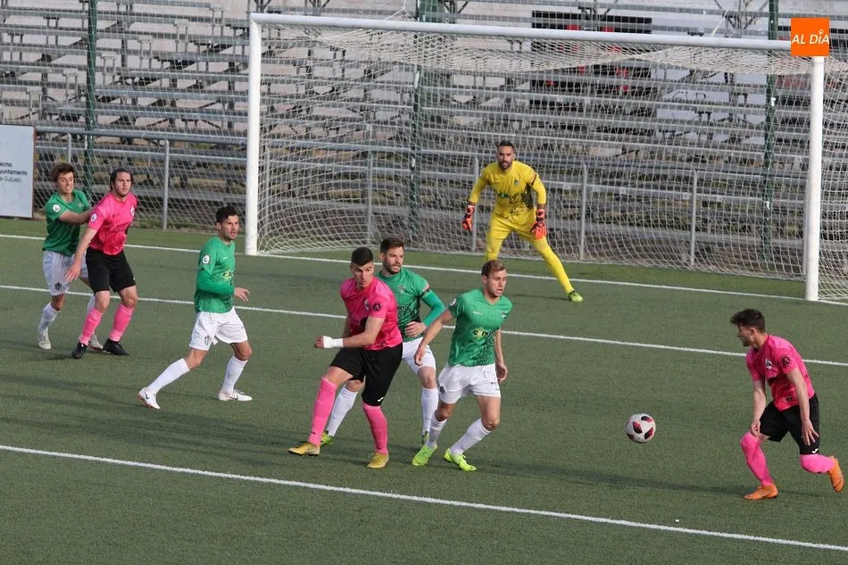 En la primera mitad se vivió un partido muy igualado entre los dos equipos. Pese al buen hacer del Sanse fuera de casa, el equipo chacinero se plantó en el campo muy seguro y con las ideas claras, por lo que pronto comenzó a generar peligro ante los visitantes. Aunque no hubo numerosas ocasiones, el gol llegó en torno a la media hora de juego tras una buena jugada verdiblanca. Razvan que manda al área y tras un rechace recoge el balón Fuster para batir por abajo a Irureta. Tras el tanto, el conjunto madrileño se volvió más incisivo y llegó a poner en apuros al Guijuelo en dos faltas en la frontal del área.